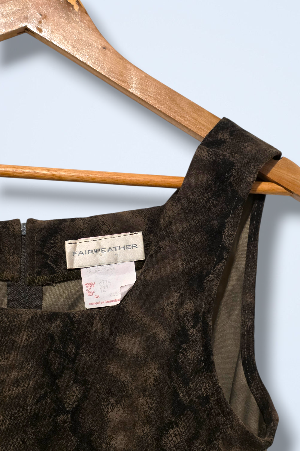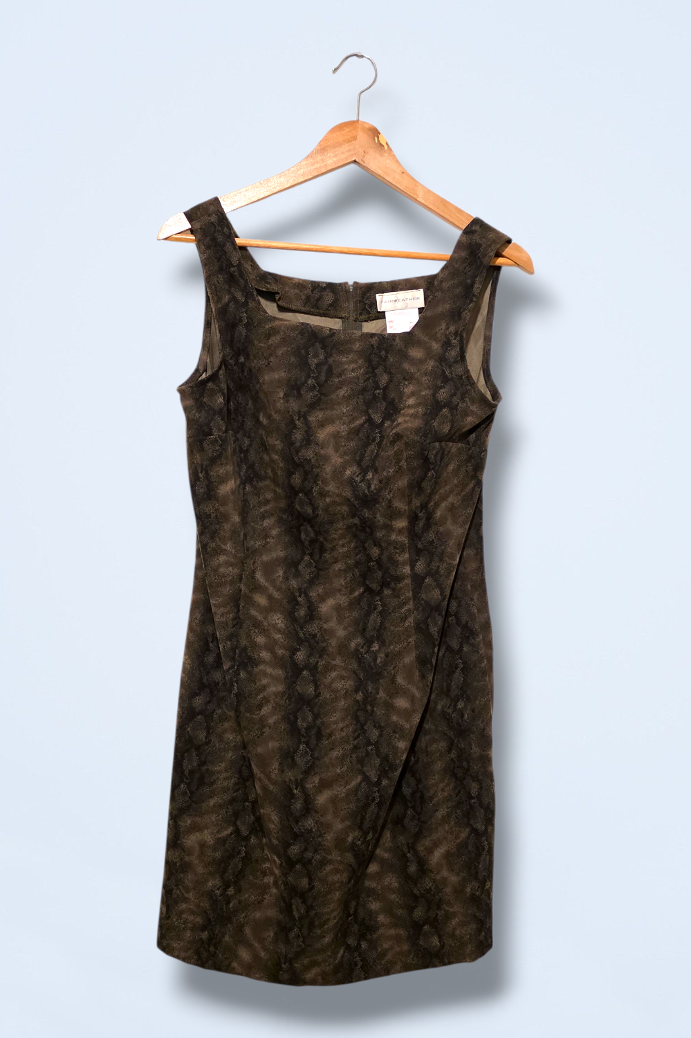 Animal Print 90s Vintage Fairweather Green & Black Dress UK 12