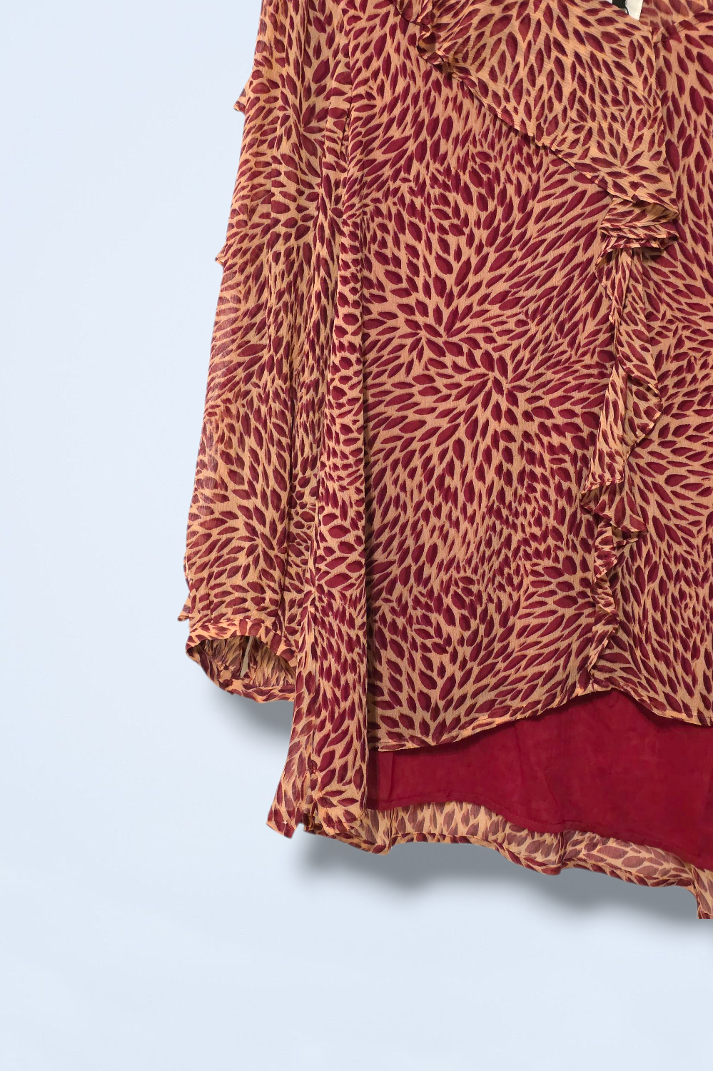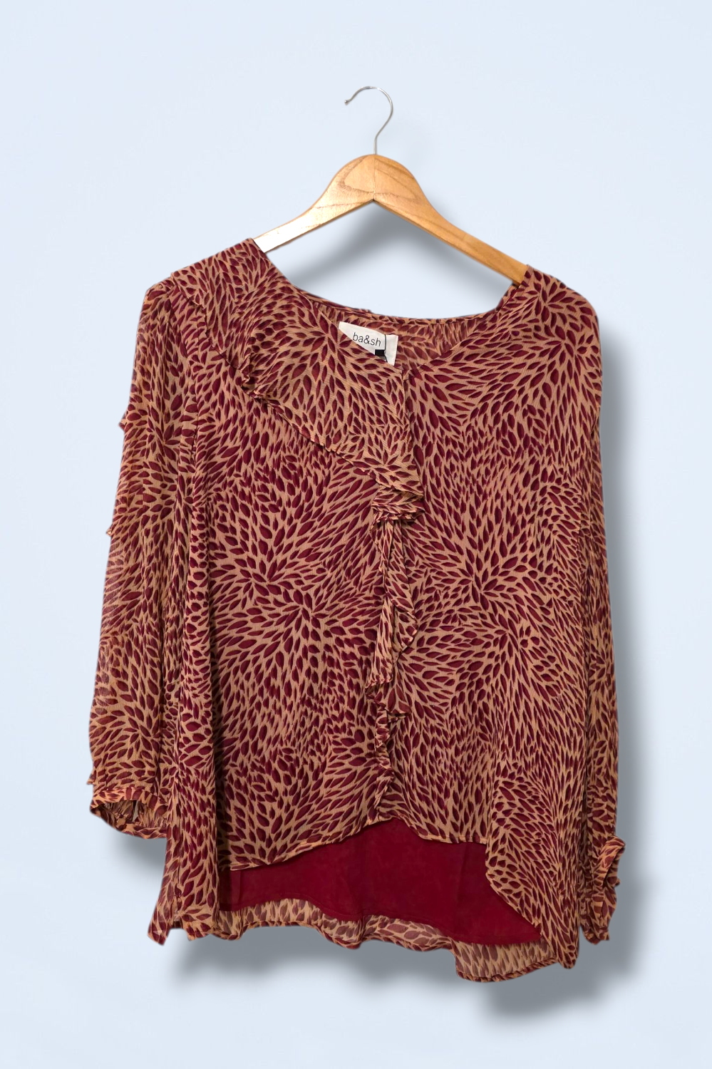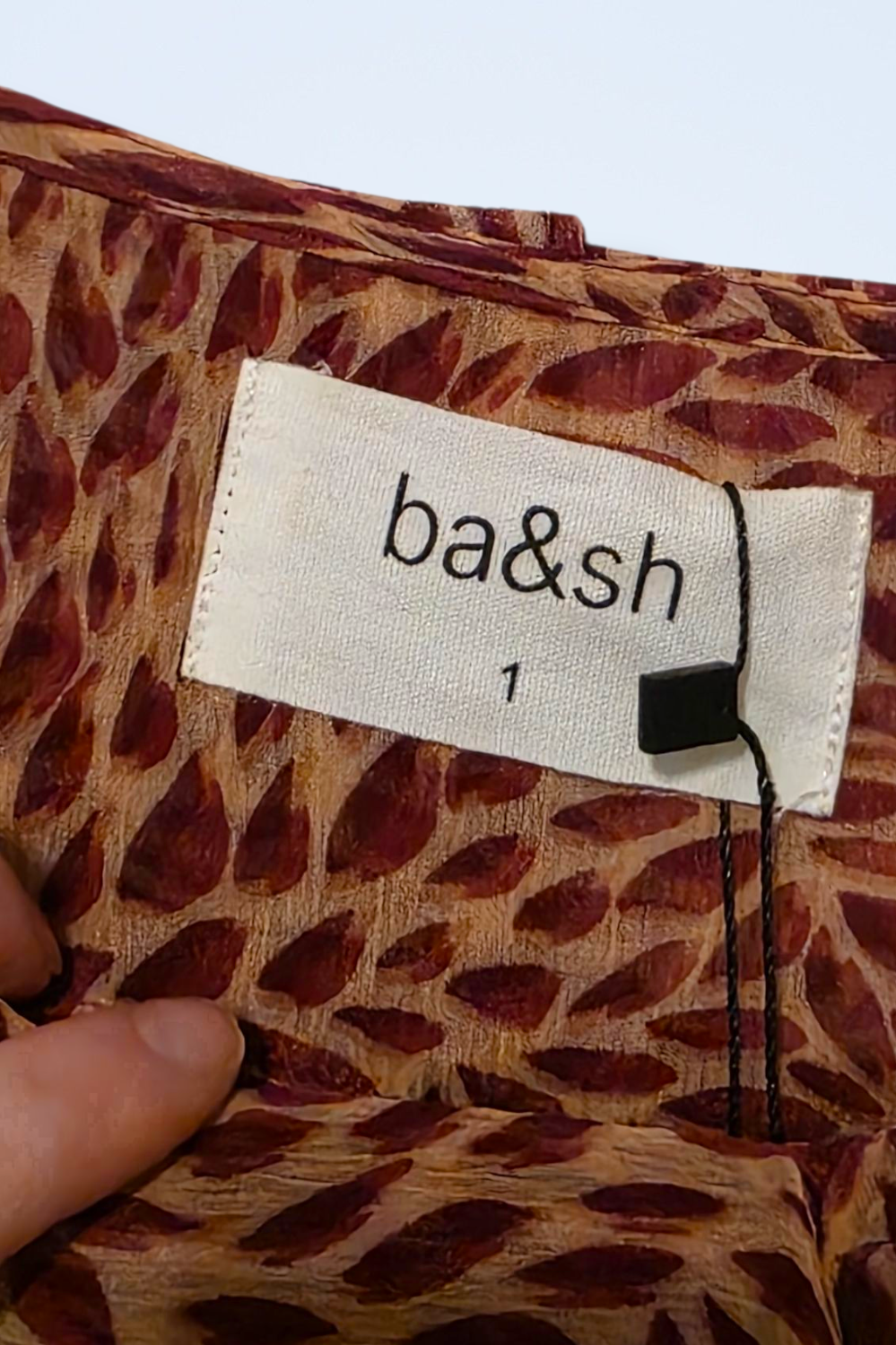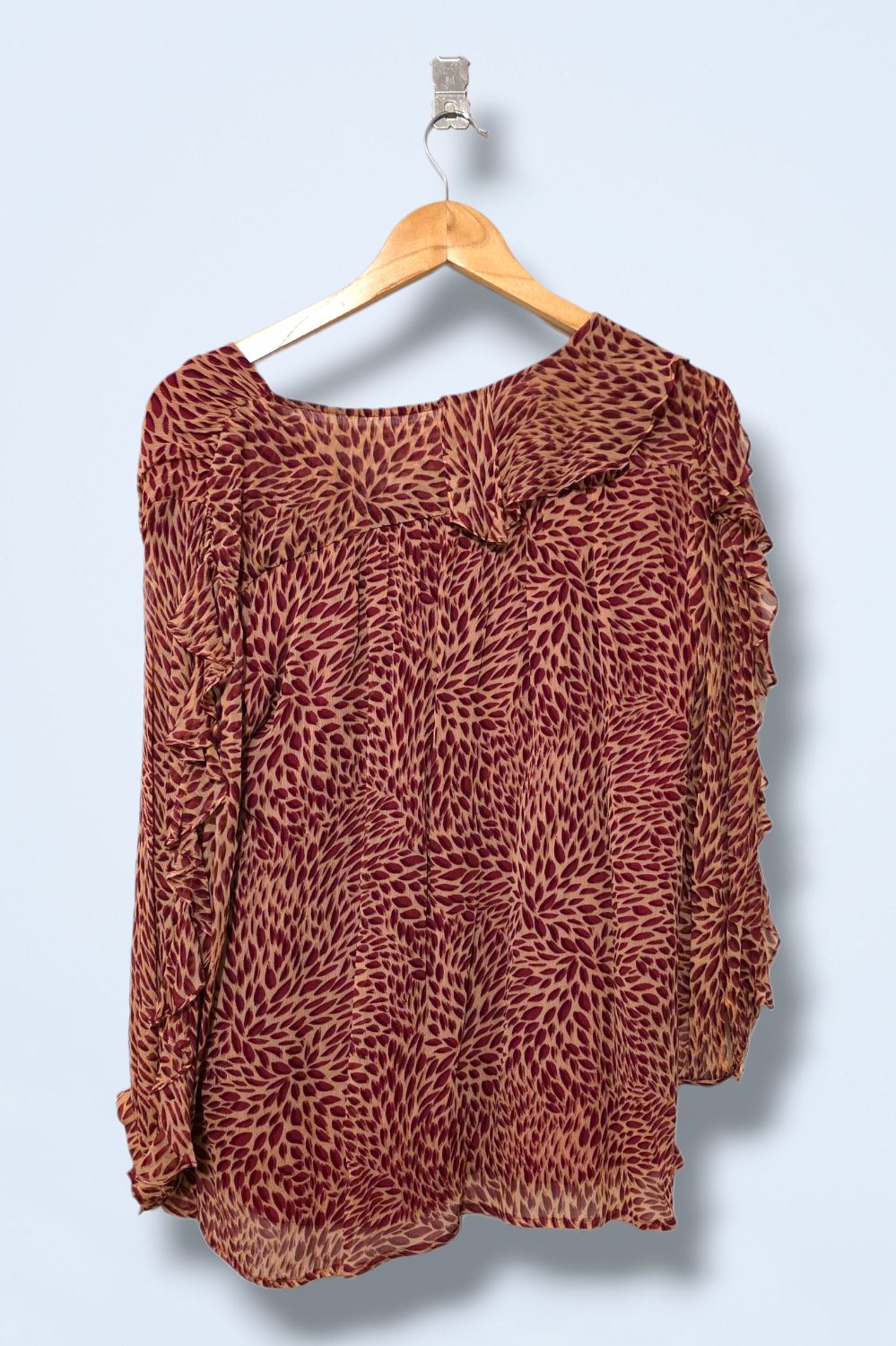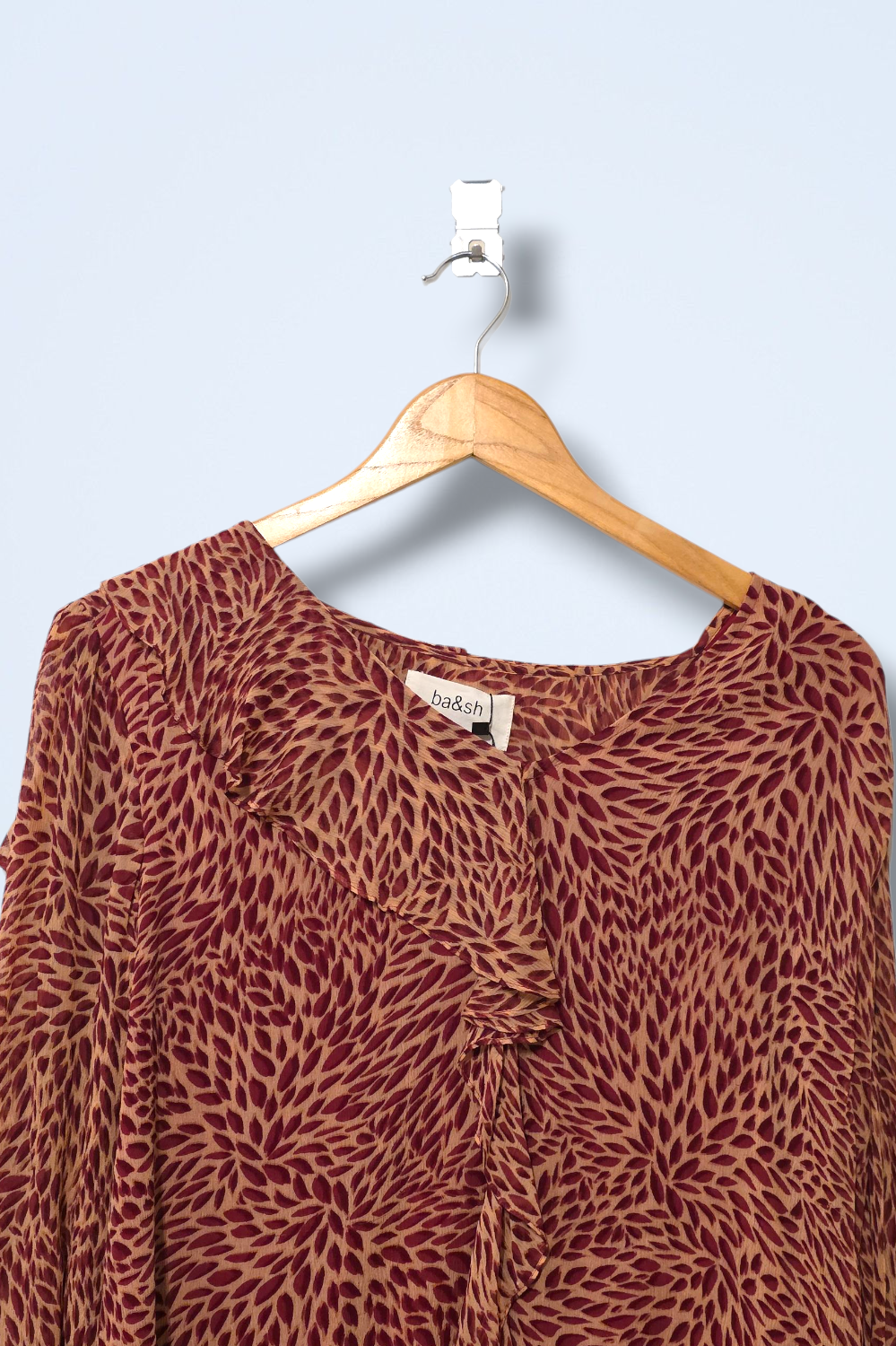 Ba&sh Size 8 Long-sleeved Printed Ruffled Blouse Viscose