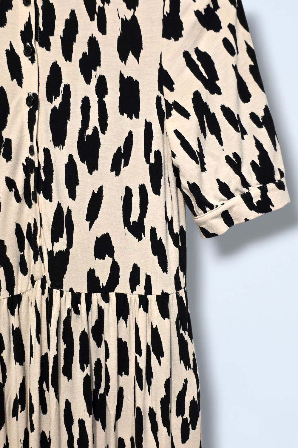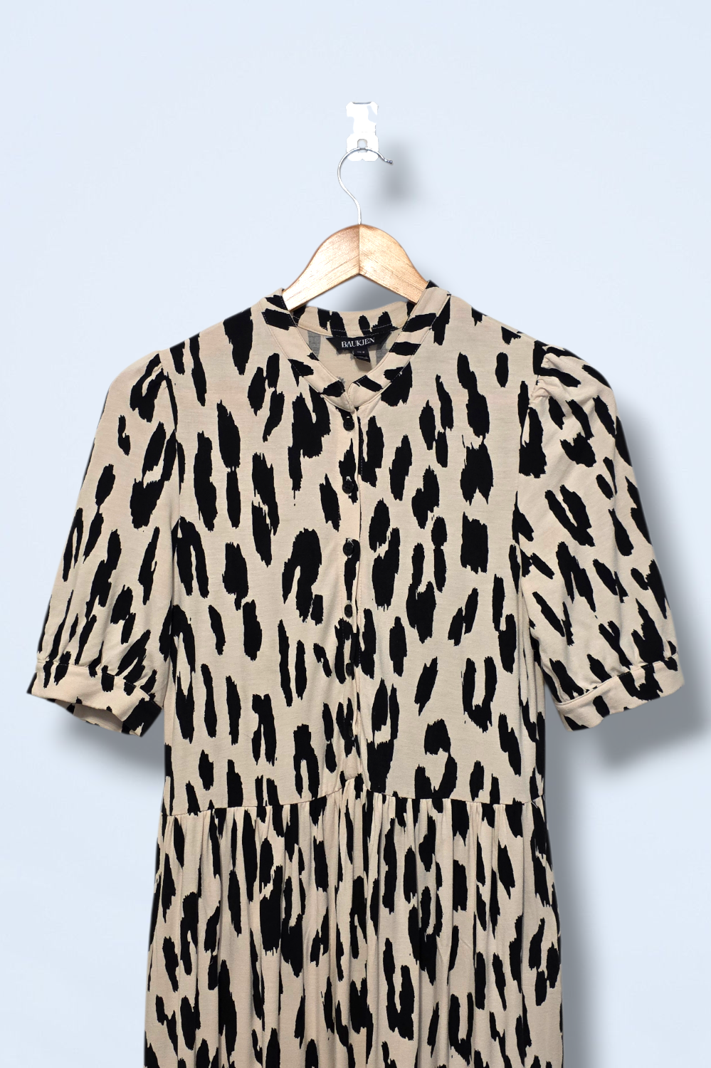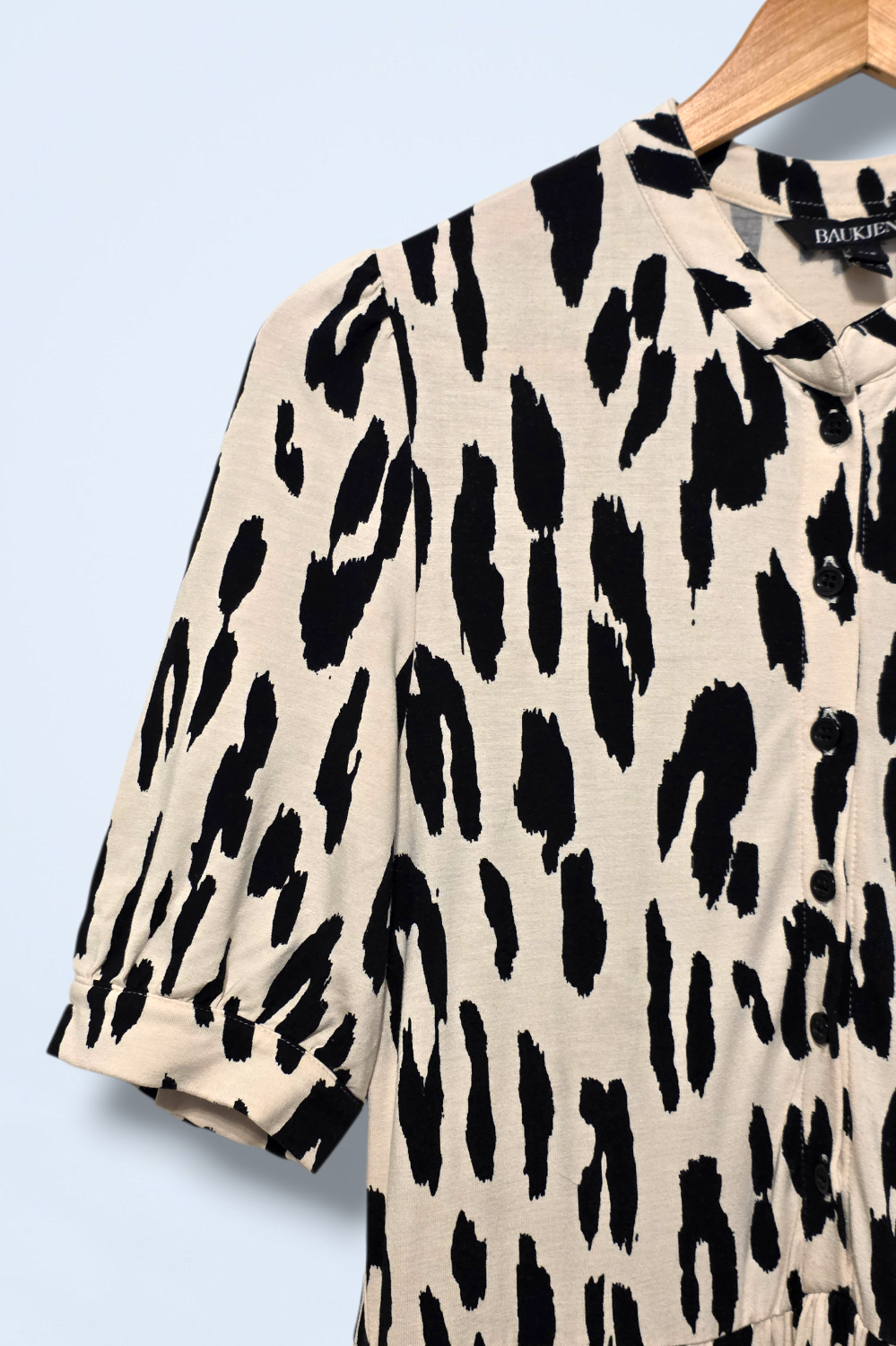 Baukjen – Black and White Animal Print Dress – Button-up – Size 8
