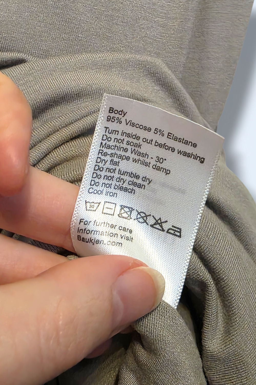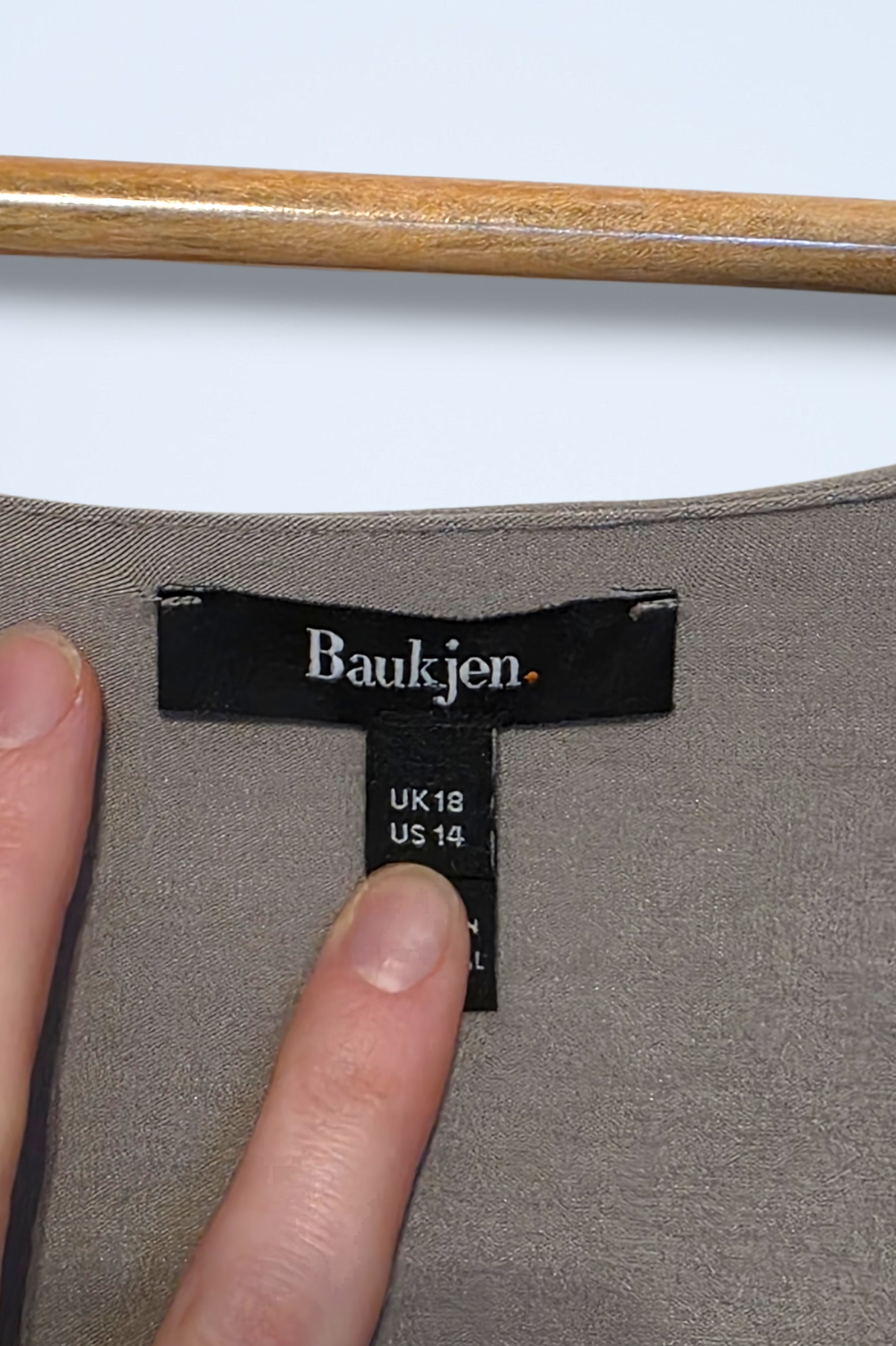 Taupe coloured, round neck dress with a shirred side and ¾ Length sleeves Brand: Baukjen Size: UK 18 Condition: Excellent, pre-owned... Read more