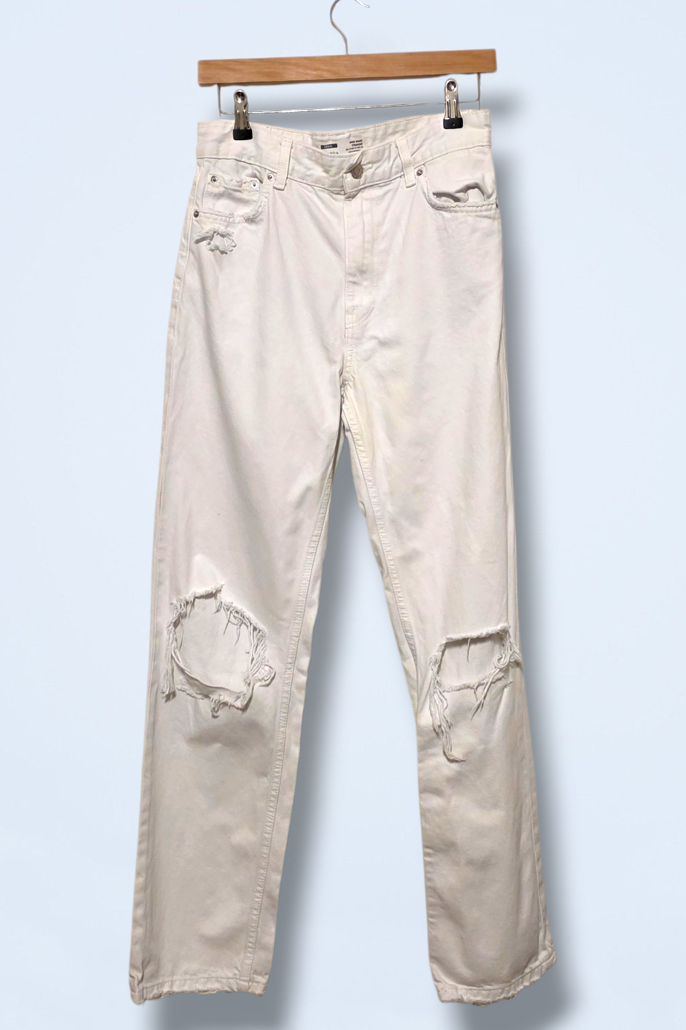 Bershka – White Ripped Denim Jeans - W28 - 100% Cotton