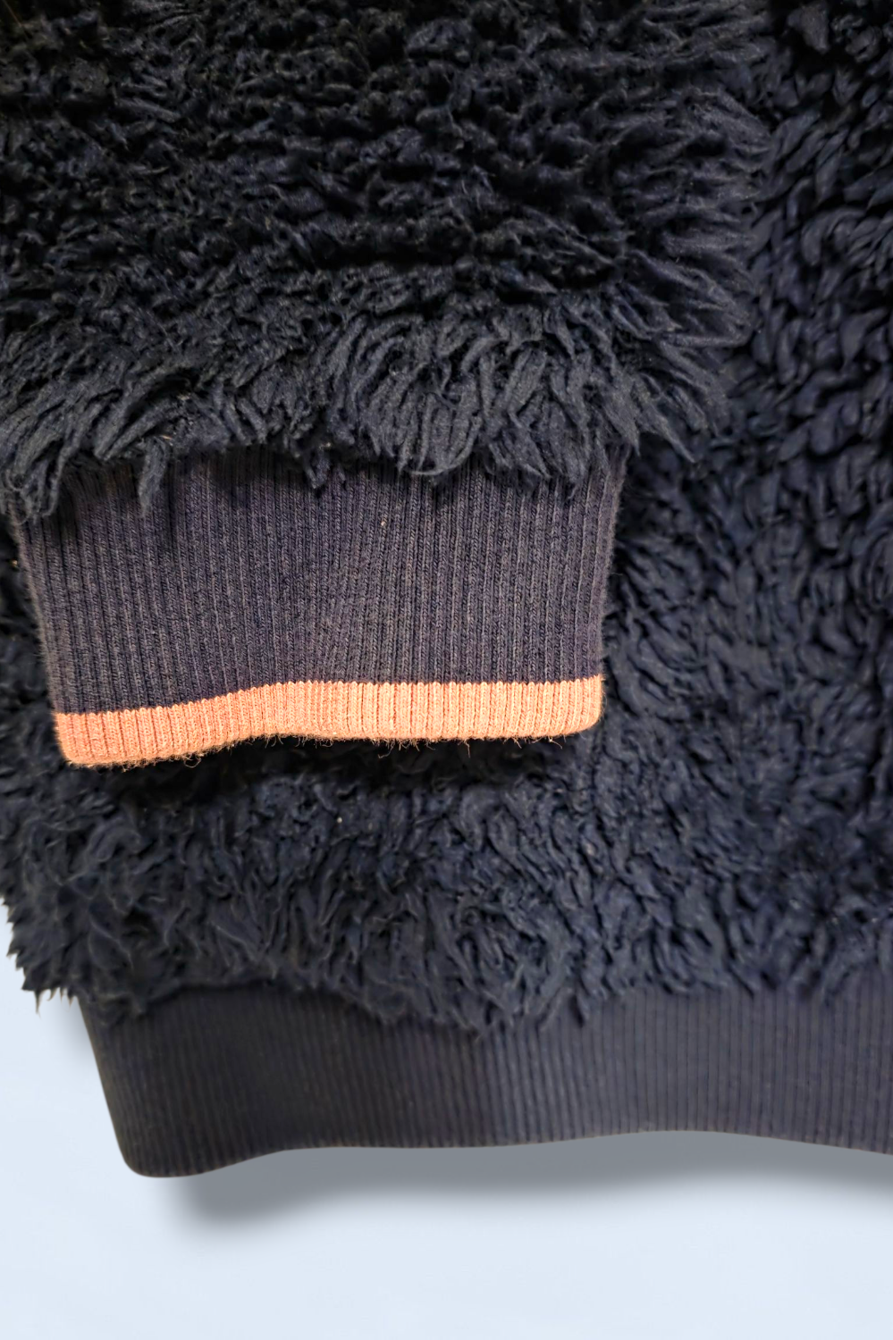 Navy blue, super-soft ¼ Faux fur jacket with pink trim and hood.