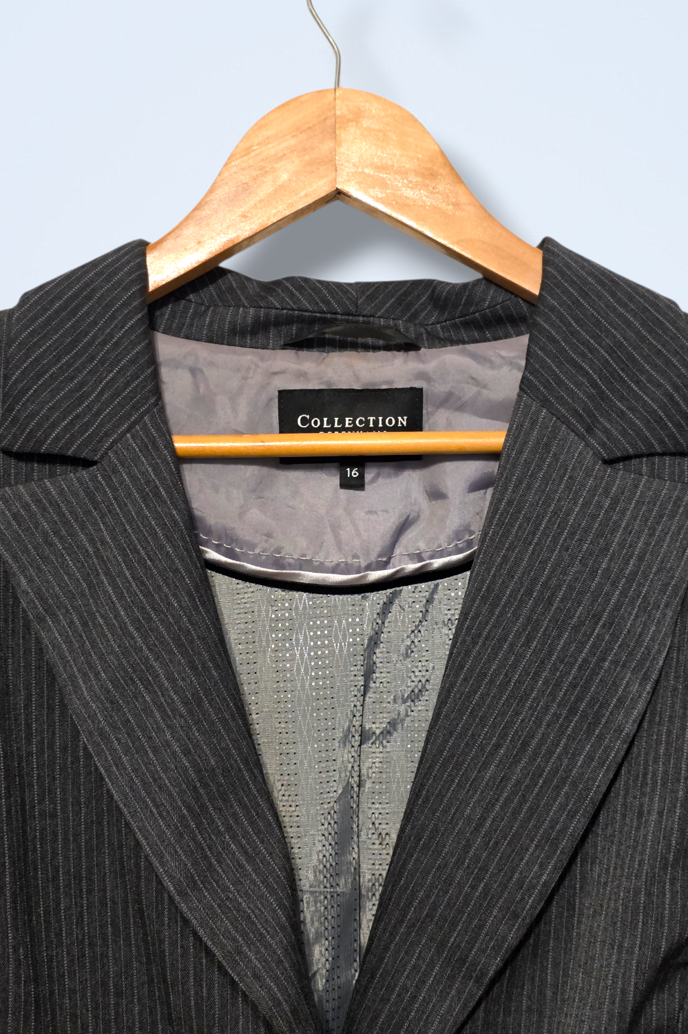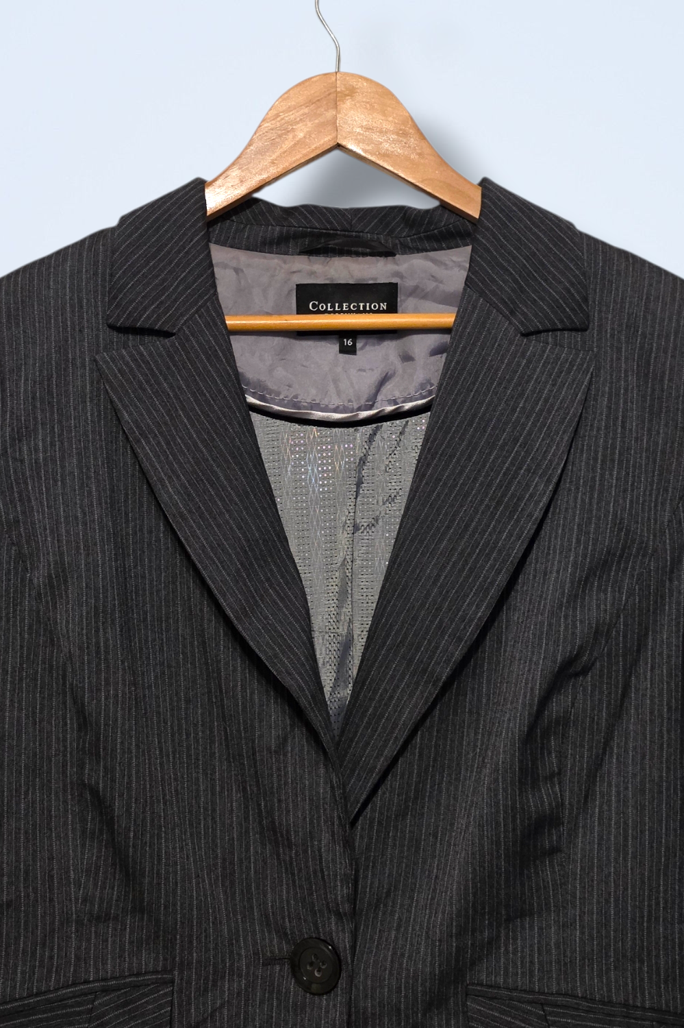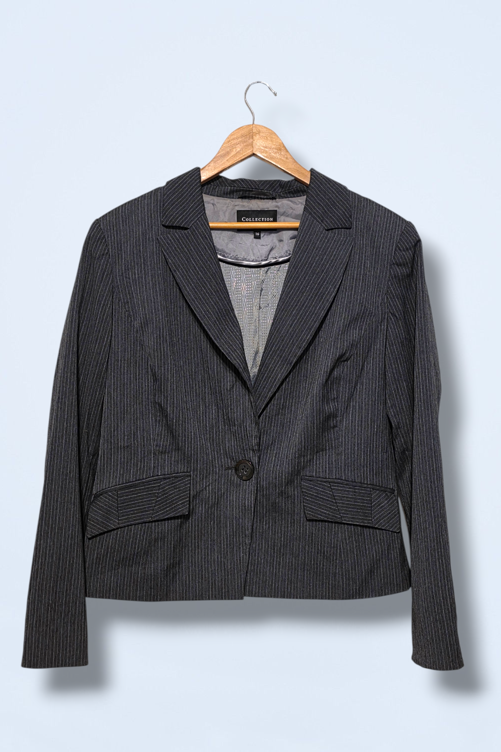 Debenhams – Size 16 – Grey Pinstriped Blazer – Single Button