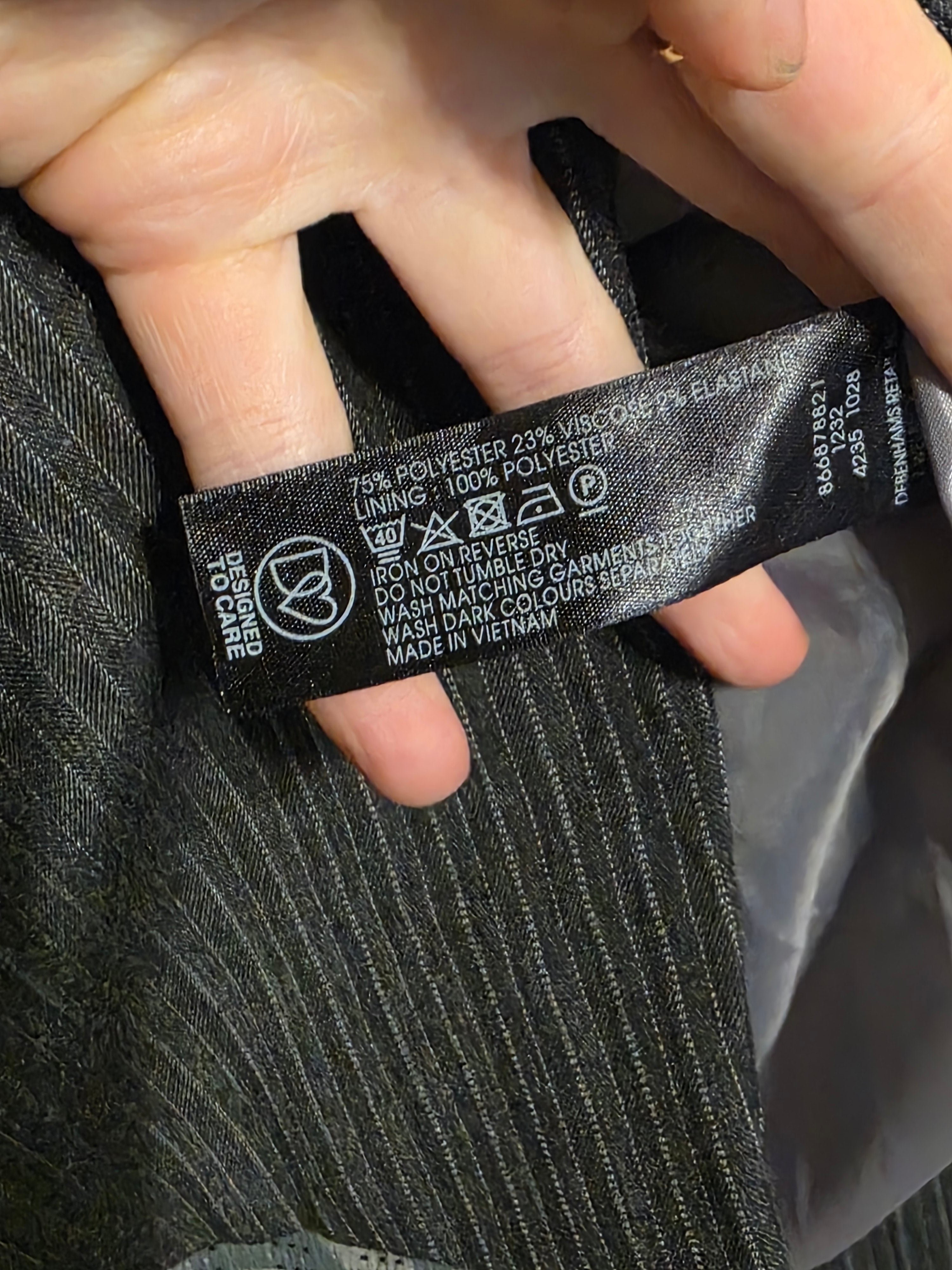 Dark grey pinstriped blazer, long-sleeved with single button fastening. Brand: Debenhams Size: UK 16 Condition: Great, pre-owned condition P2P: 22 in... Read more