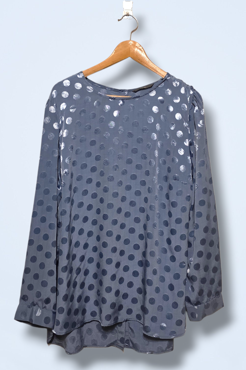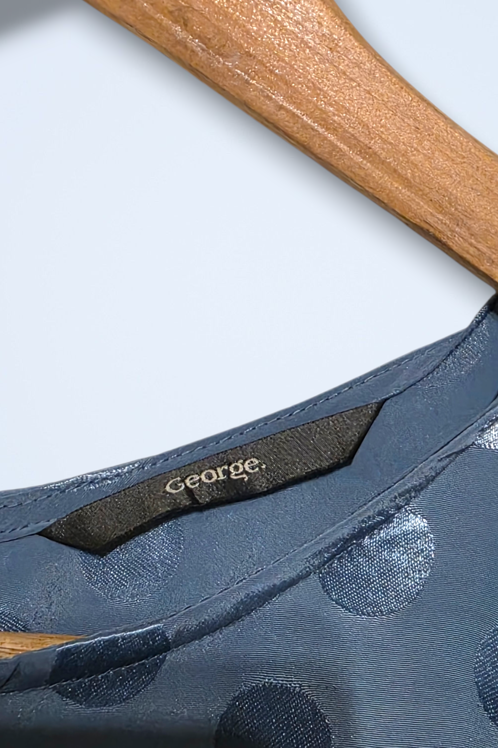 George – Size 18 – Blue Long-sleeved Blouse – Button Back – Polka Dot