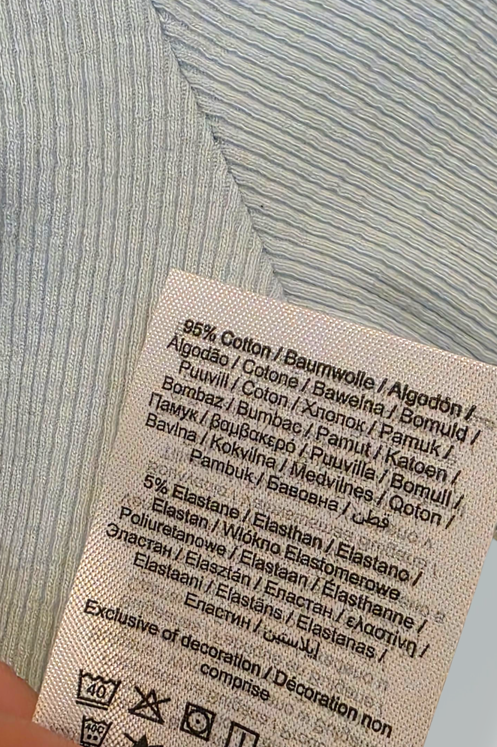 Round neck ribbed cropped t-shirt with short sleeves. Fitted design.