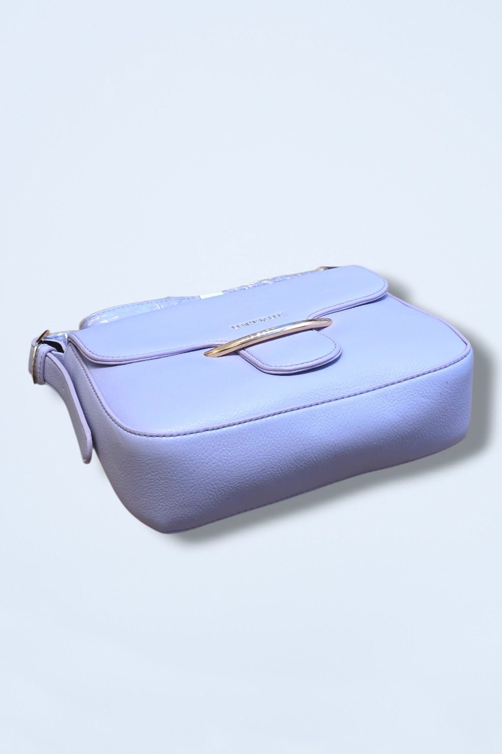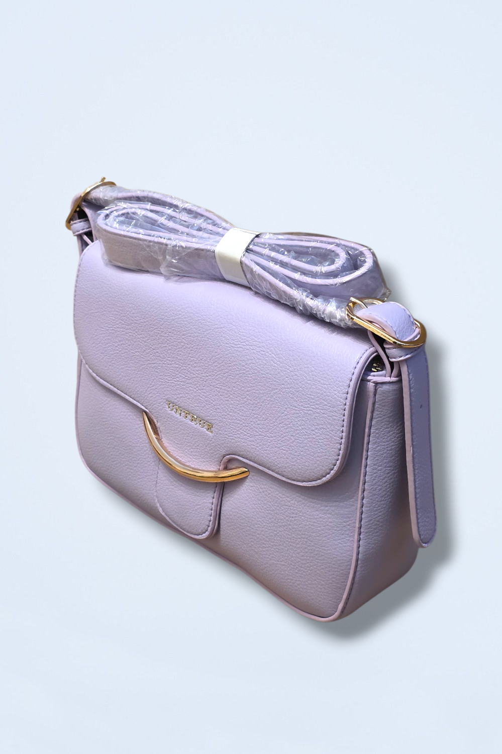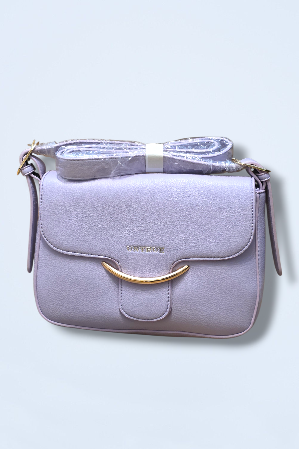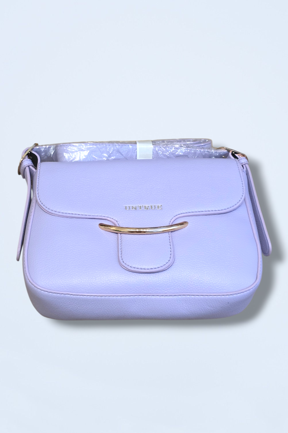 Small lilac vegan leather handbag with gold hardware snap button front, and zipped pockets Brand: Untrue Condition: New, with tags... Read more