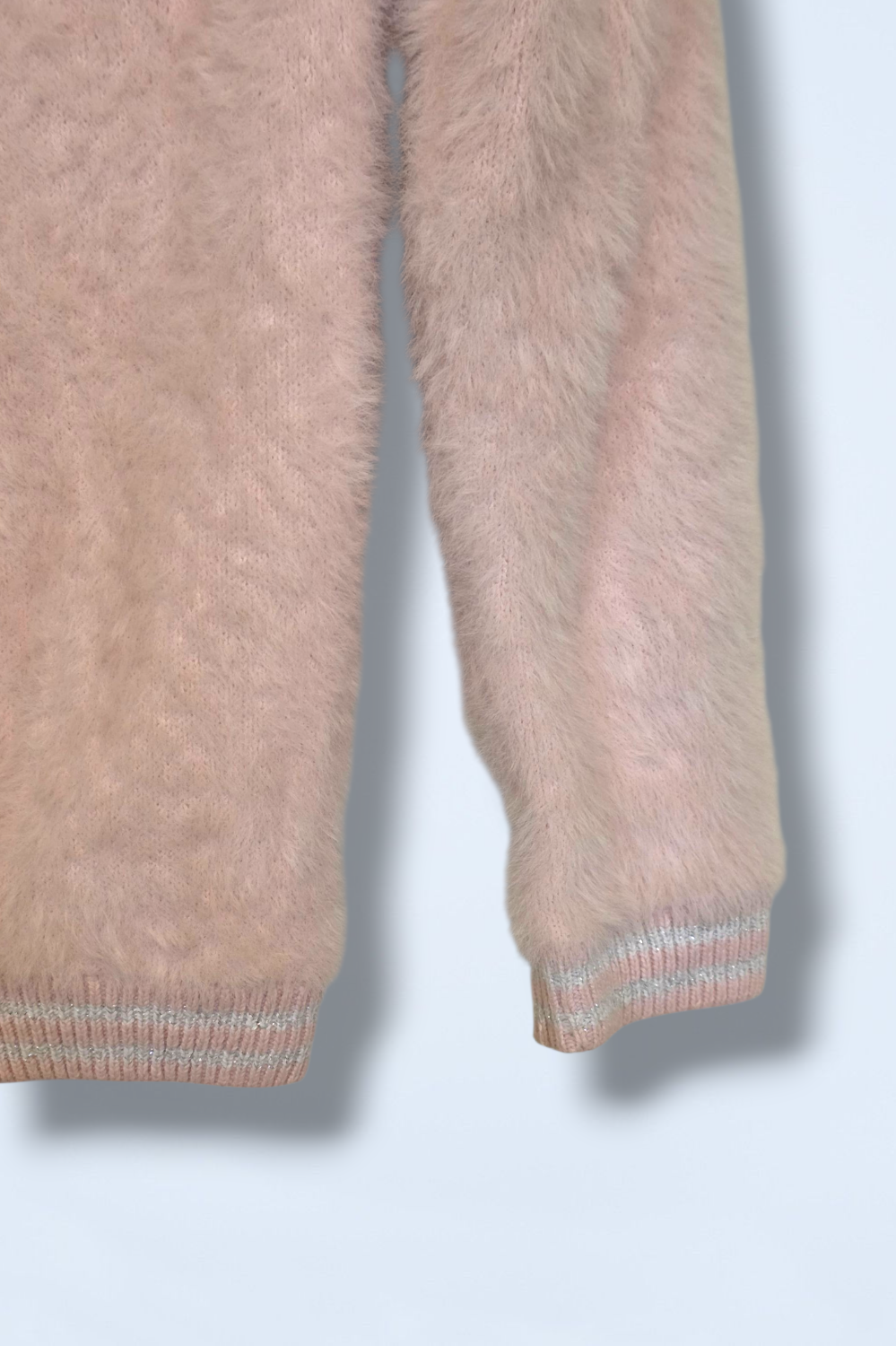 Pale pink eyelash knit jumper, full zip with a sparkly diamanté detailing