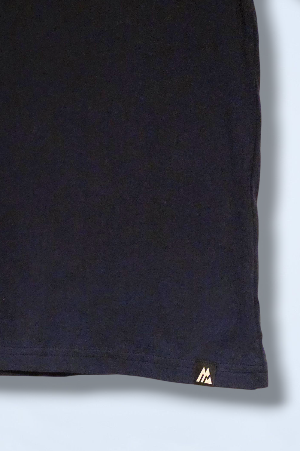 Navy t-shirt with a logo and mountain print print. Round neck, with short sleeves.