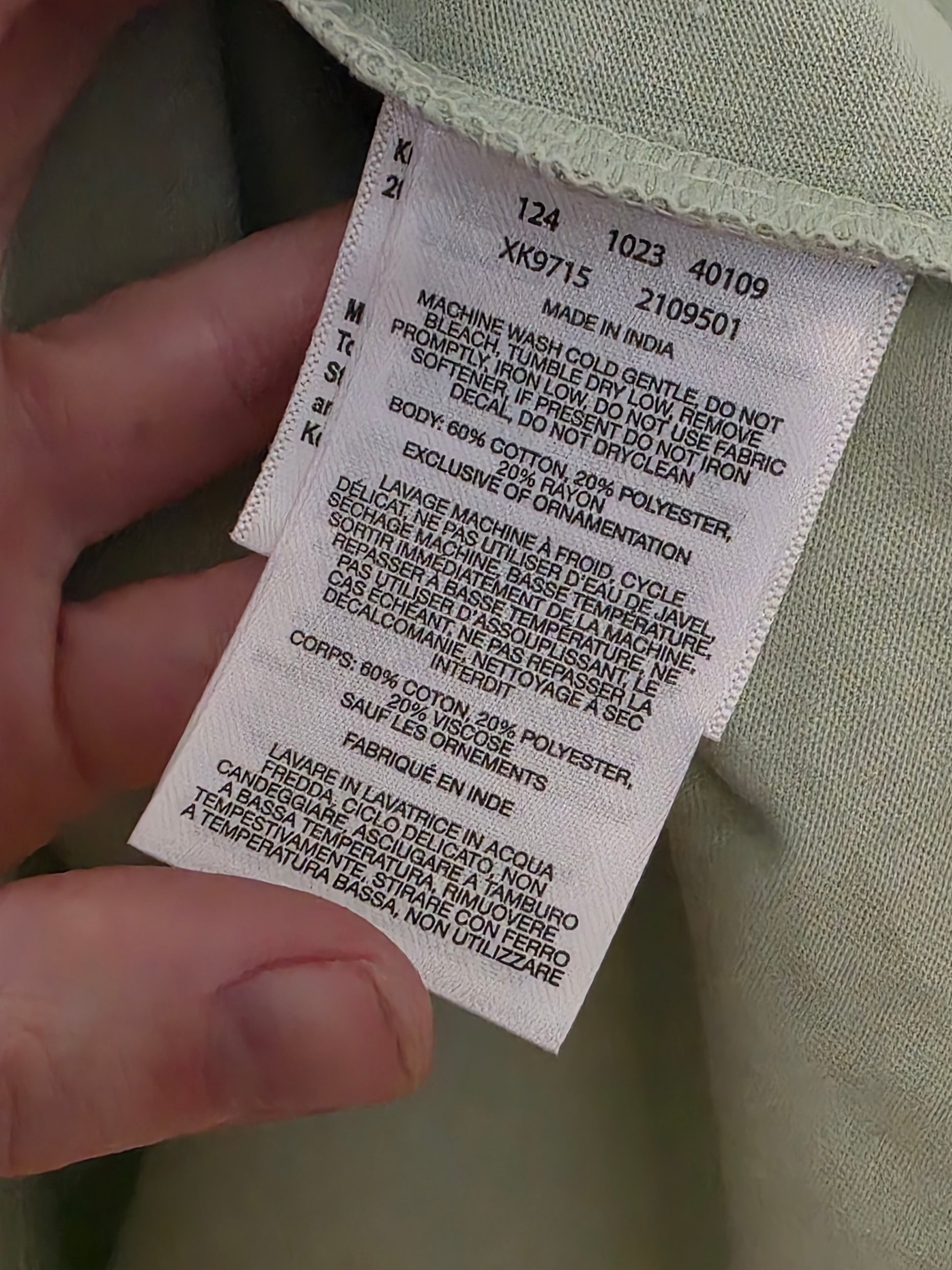 Pale green round neck short sleeved t-shirt with a logo printed front