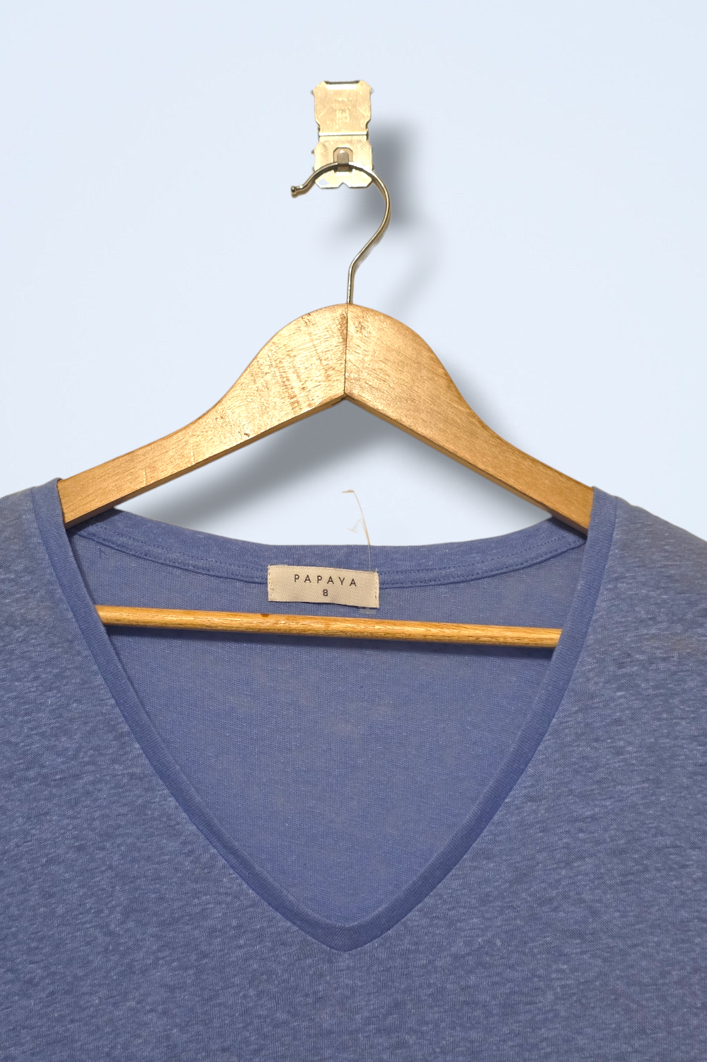 Papaya – Size UK 8 – Pale Blue Casual T-Shirt Linen Blend