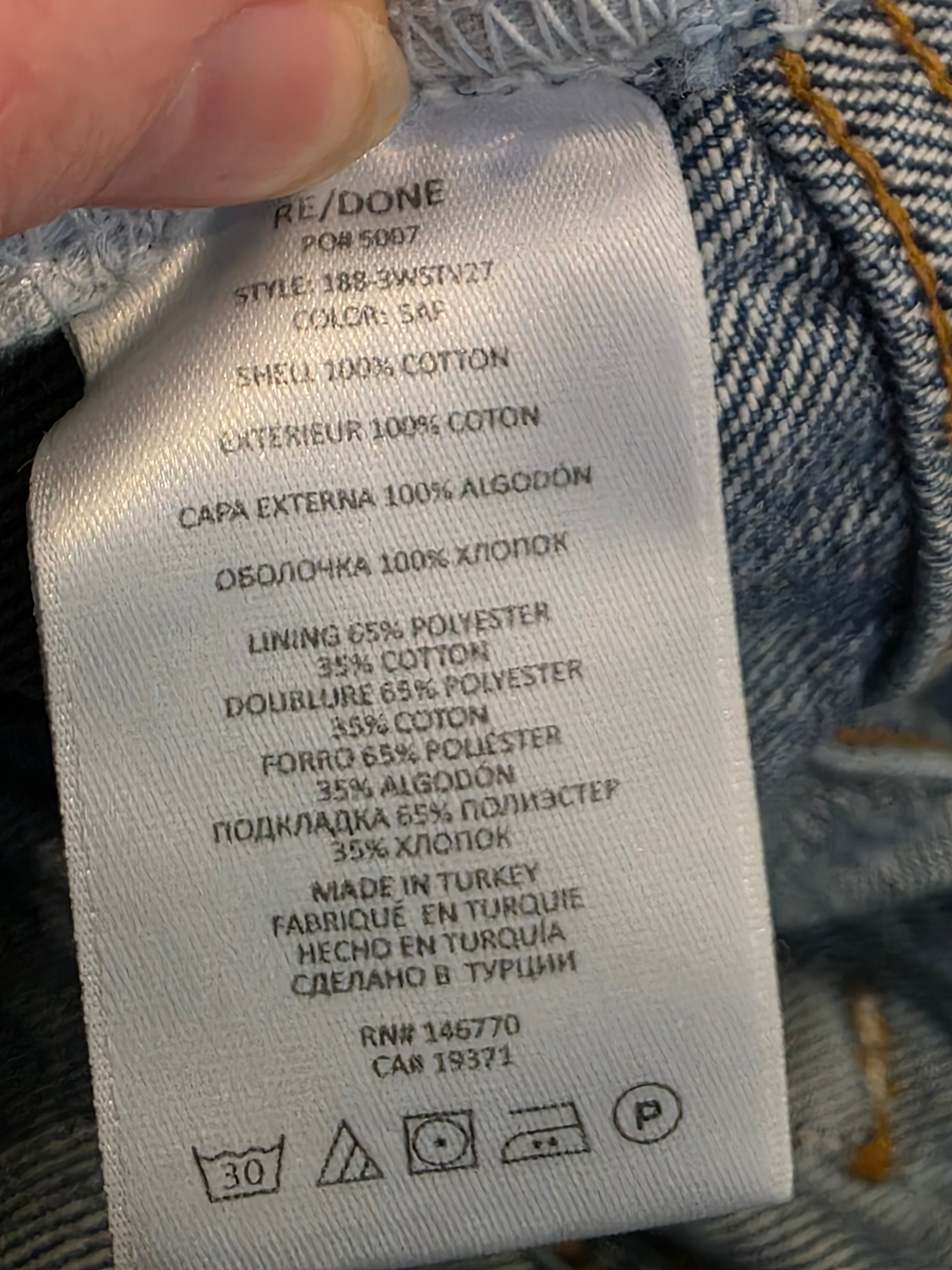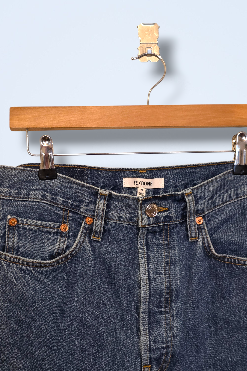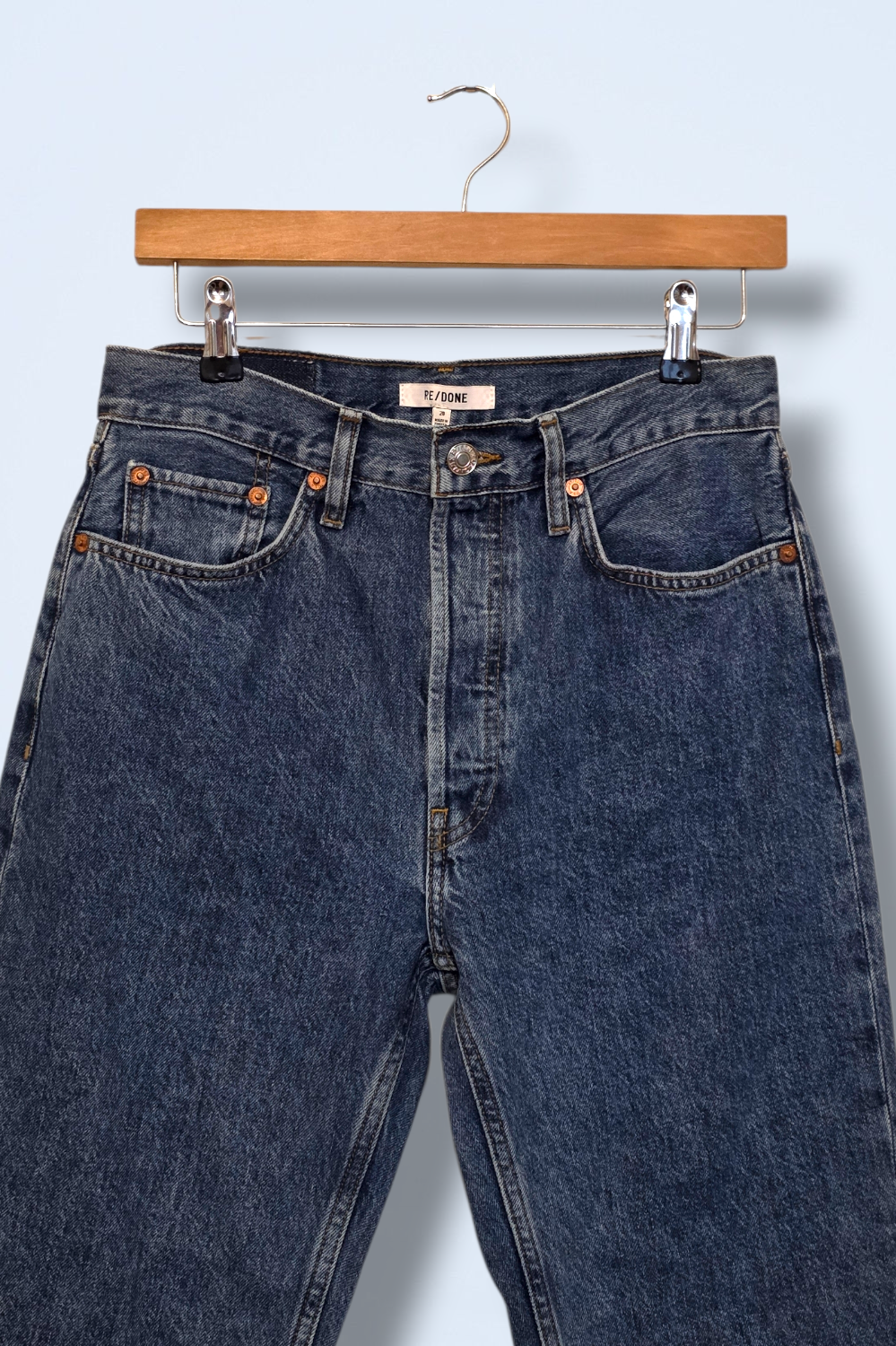 Indigo denim jeans, high rise straight leg. Cropped in-seam and classic 5 pocket design. Brand: Re/done Condition: New, with tags.... Read more