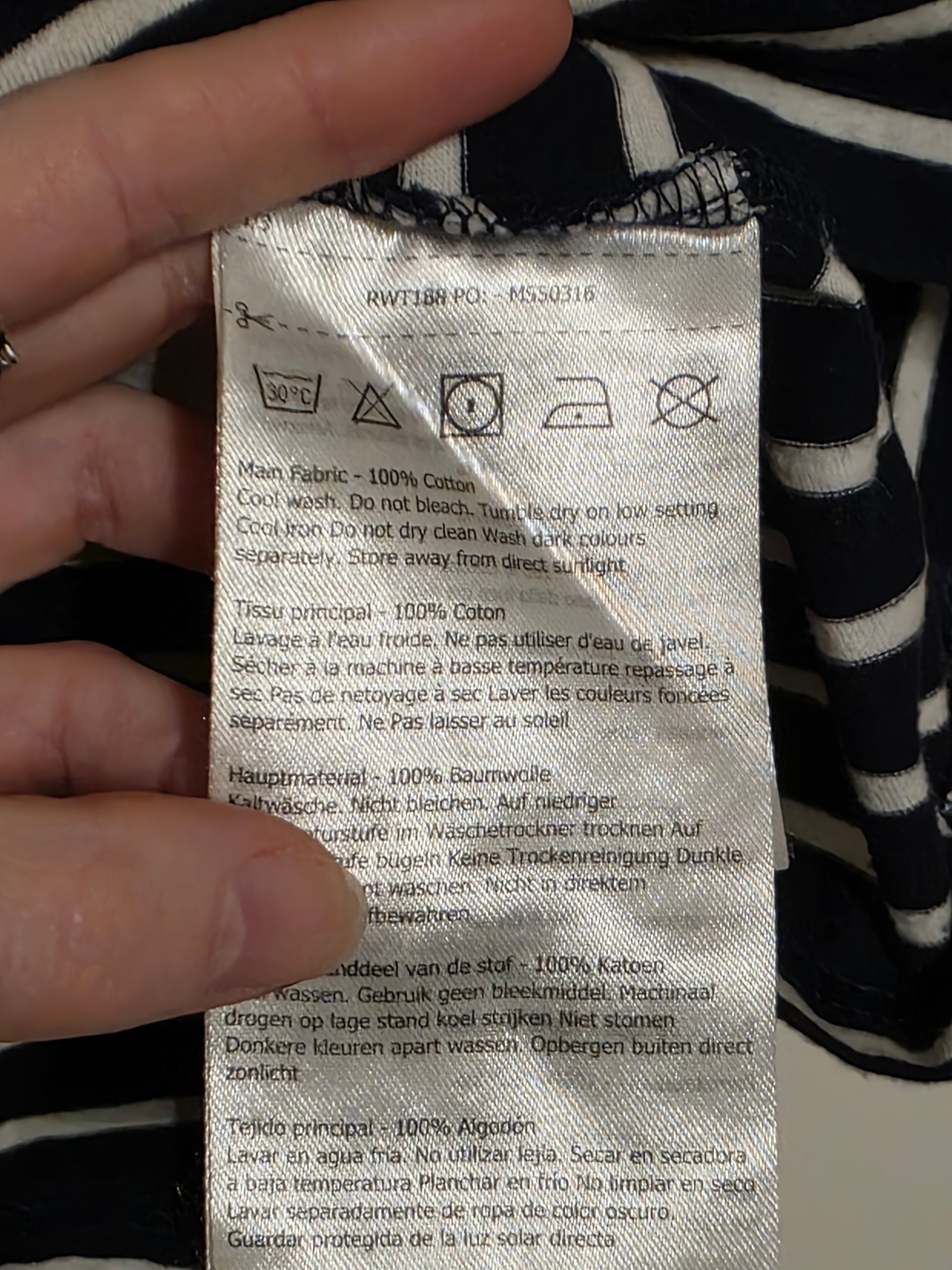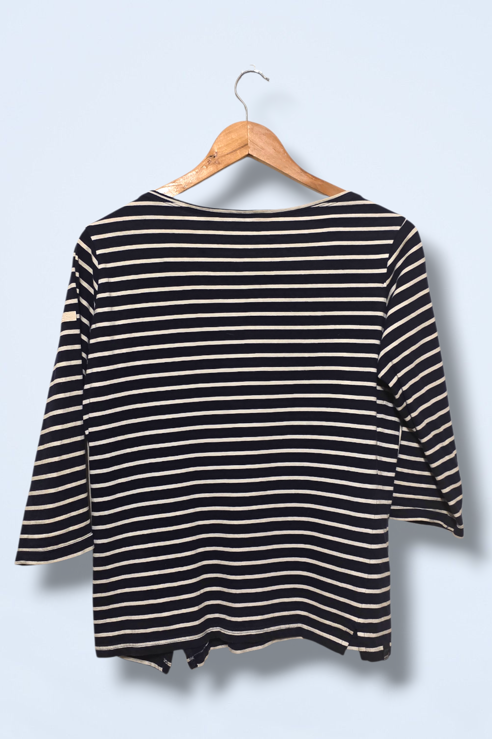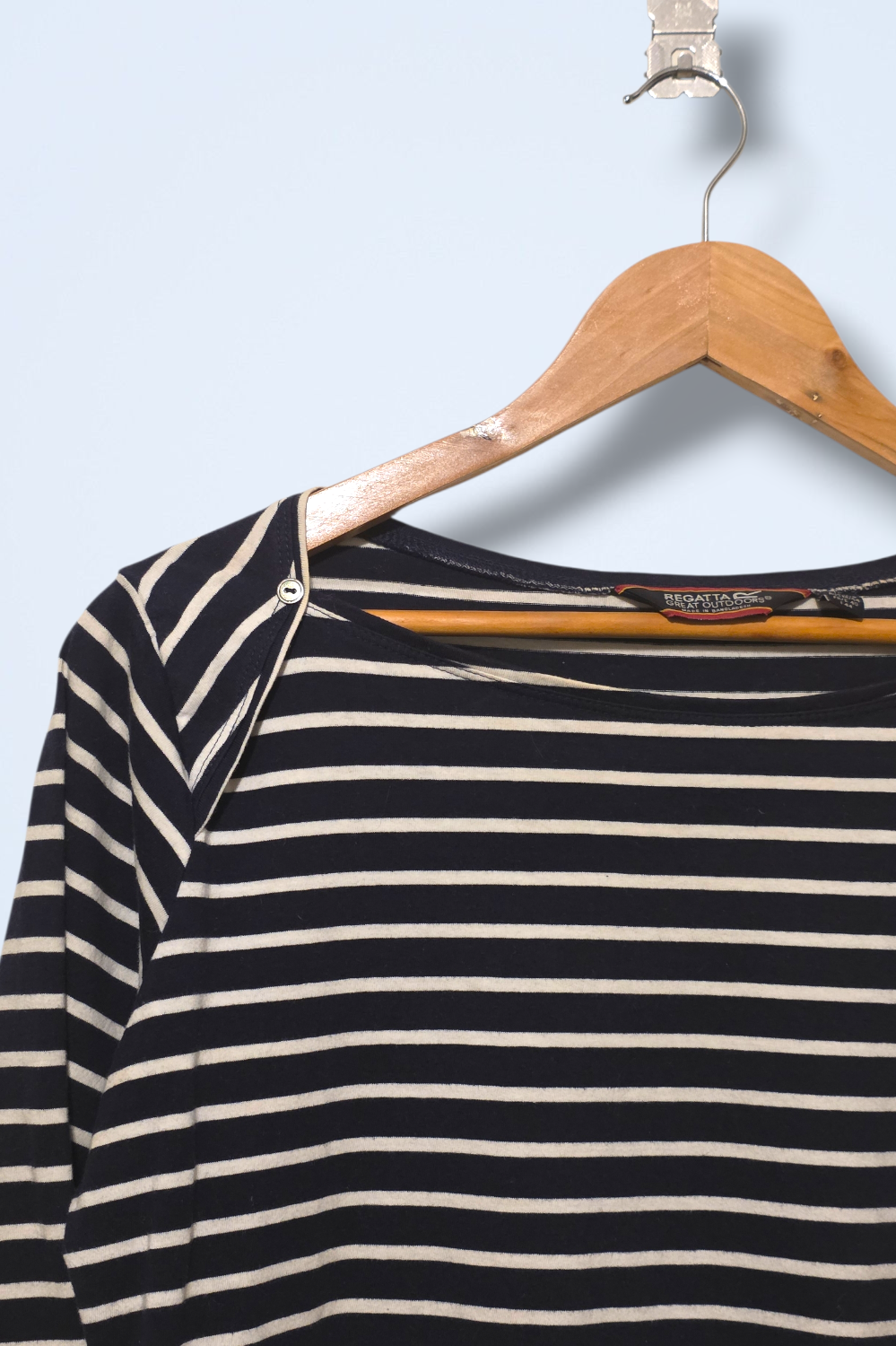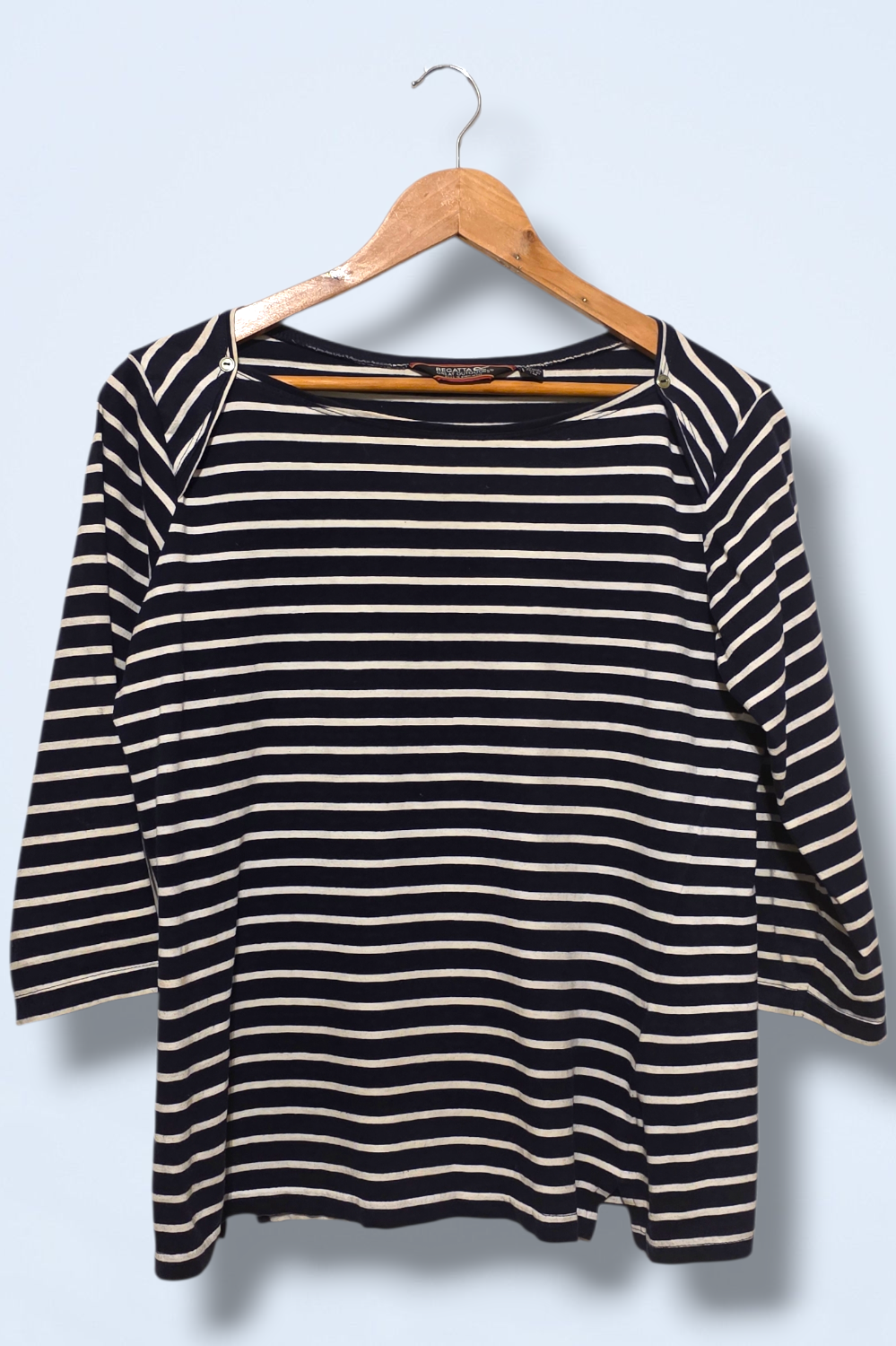 ¾ sleeve, navy and white striped top with a faux button detail on the shoulder. Brand: Regatta Size: UK 12... Read more