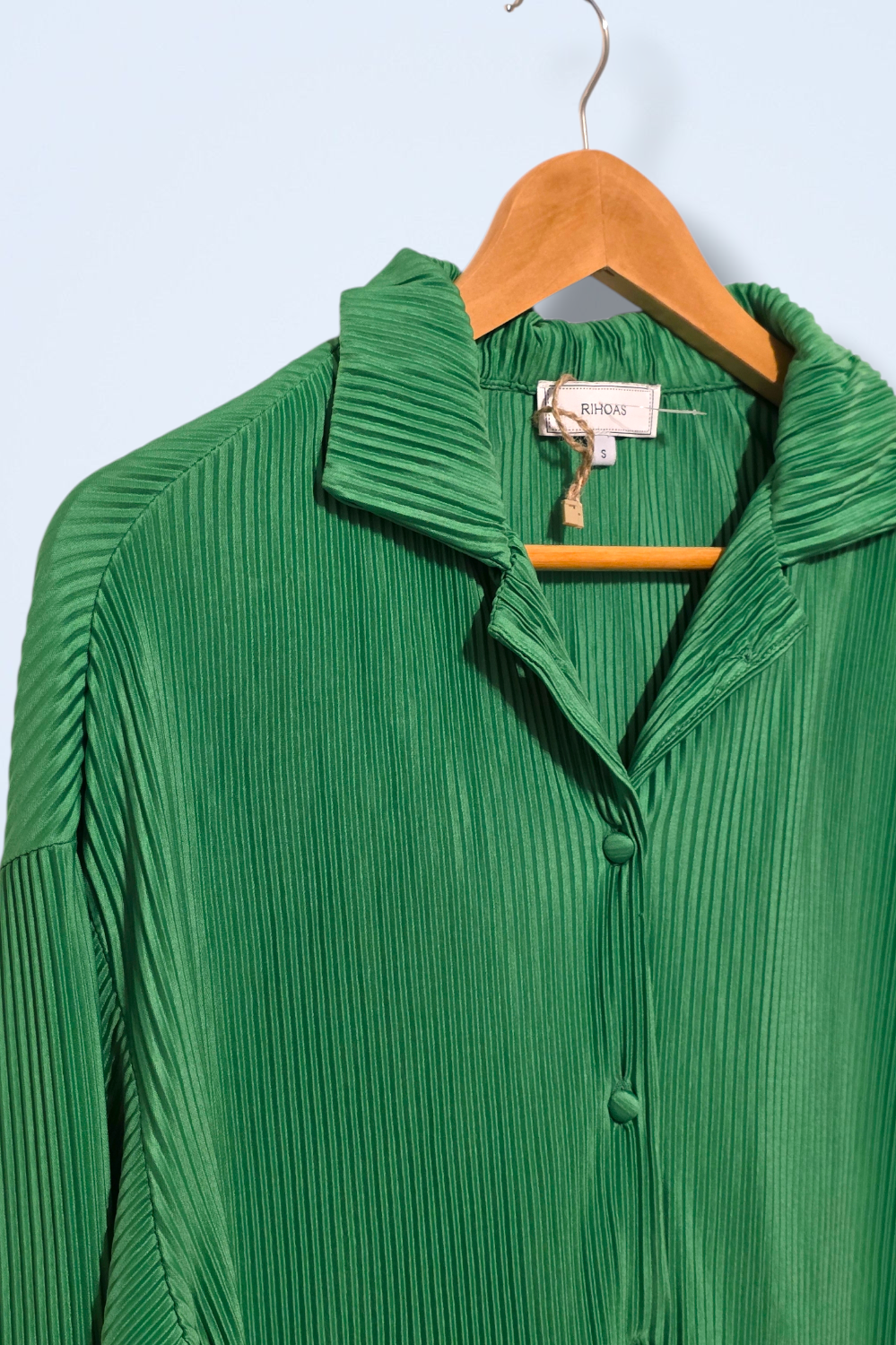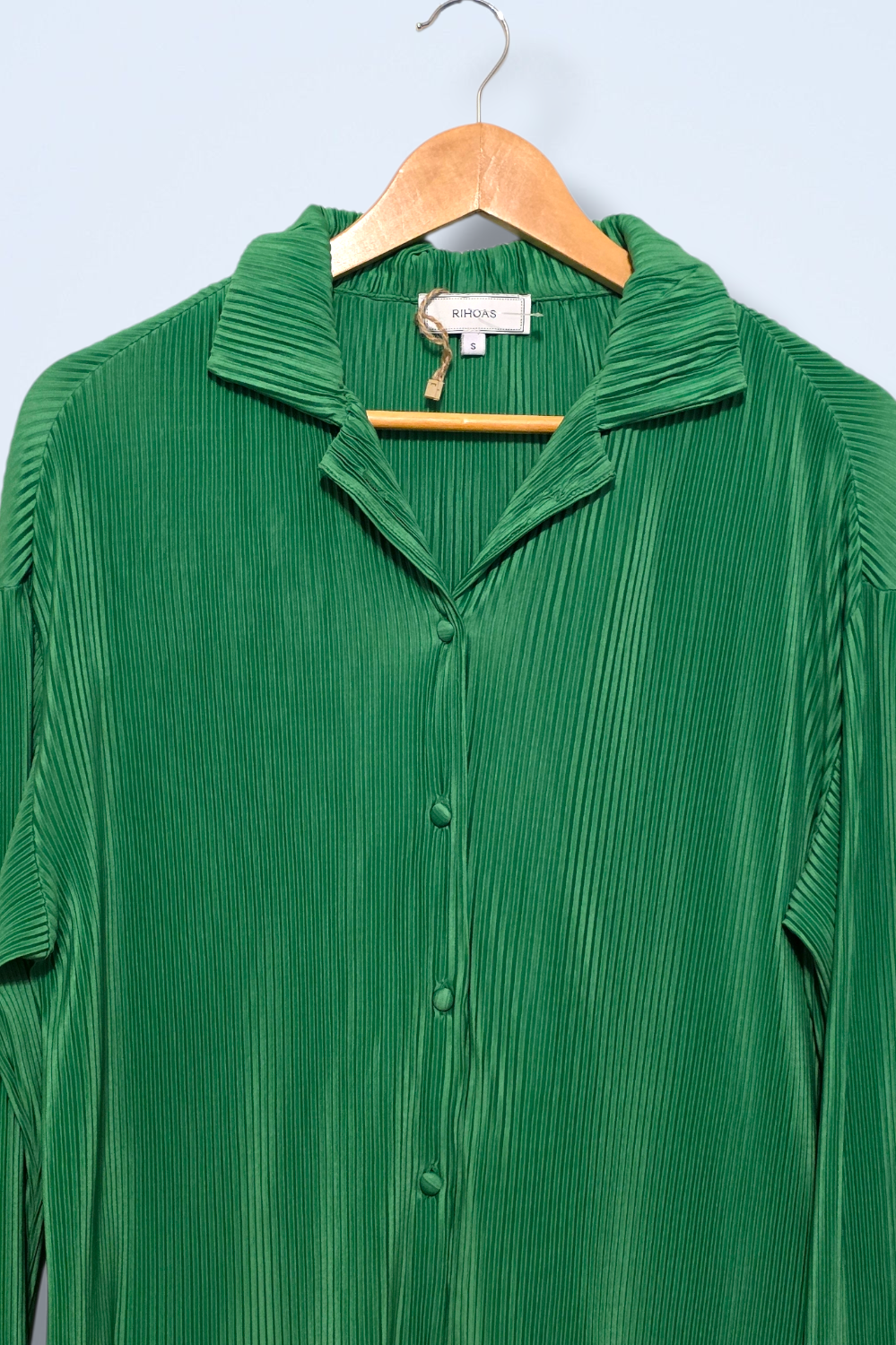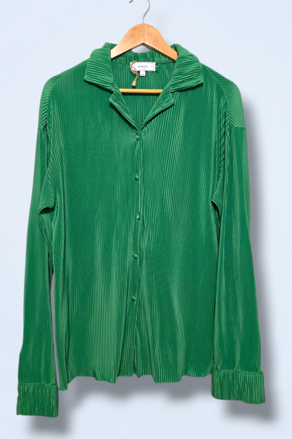 Rihoas – Size Small – Green All-over Pleated Button-up Blouse