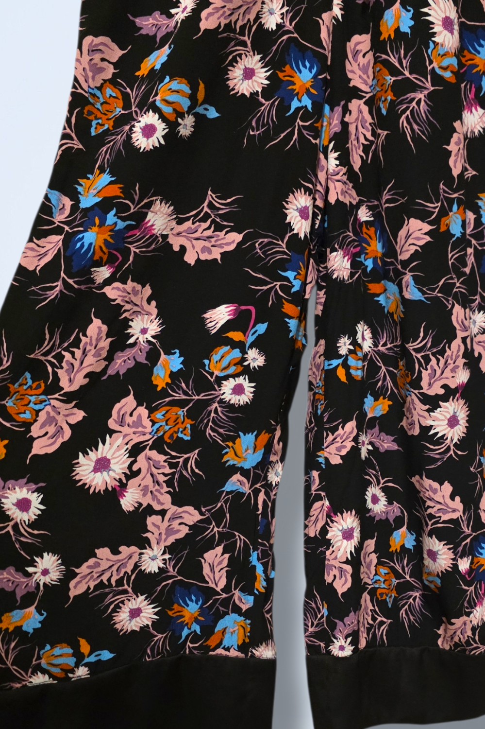 On-trend bold print, floral jumpsuit with a black base colour. Wide/straight leg with a snap button fastening and drawstring waist. ... Read more