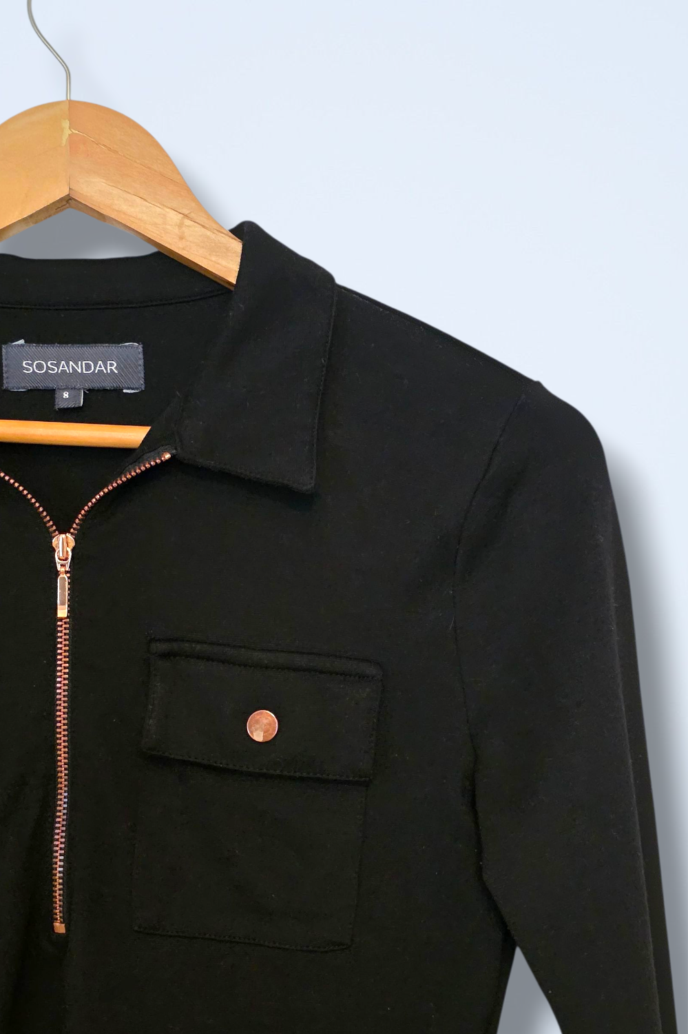 Sosandar Black ¼ Zipped Top Long-sleeved Size 8