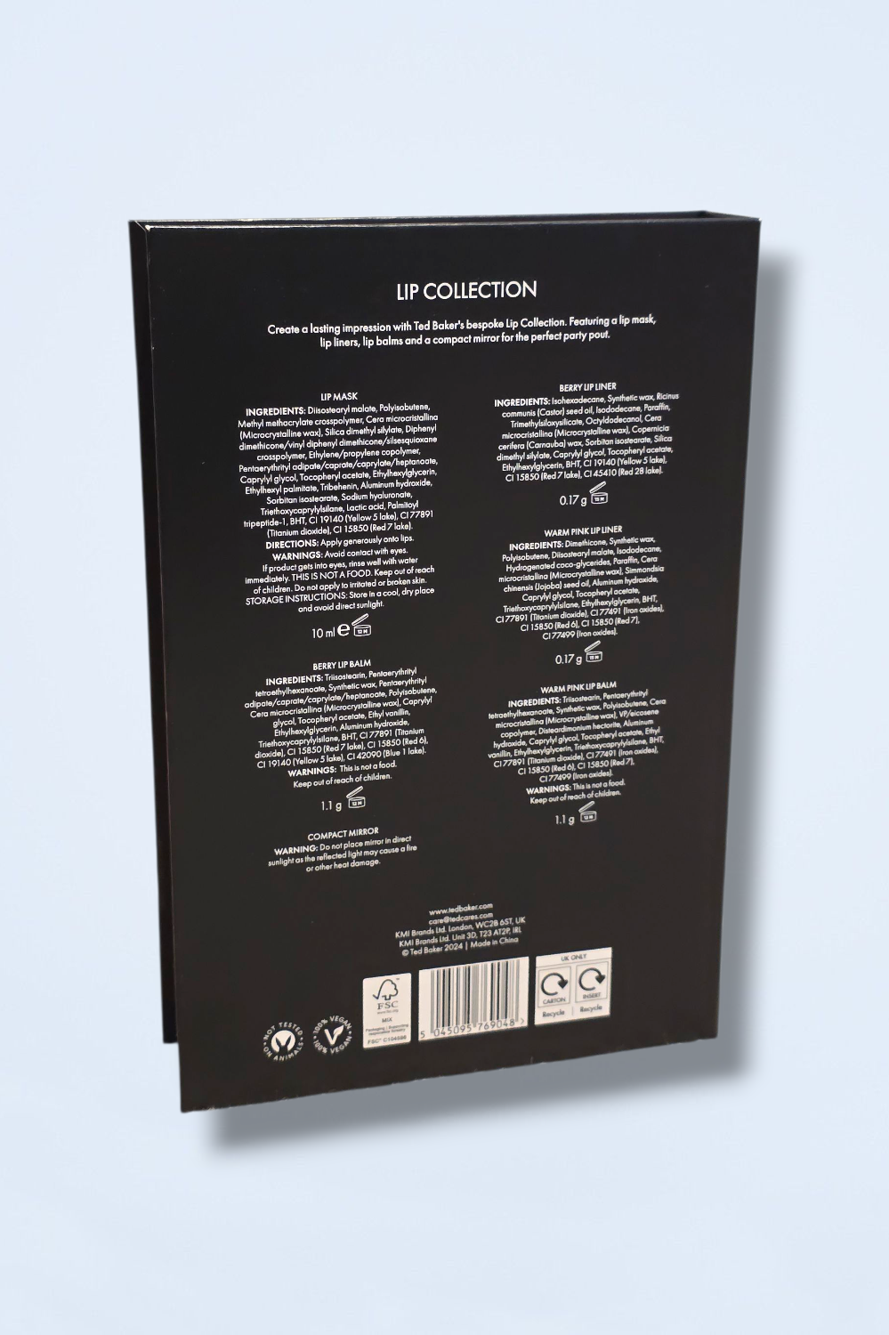 Complete, Lip Collection Gift set. Includes: Lip mask, berry Lip liner, berry Lip balm, capacity mirror, warm pink Lip liner and warm pink Lip balm.