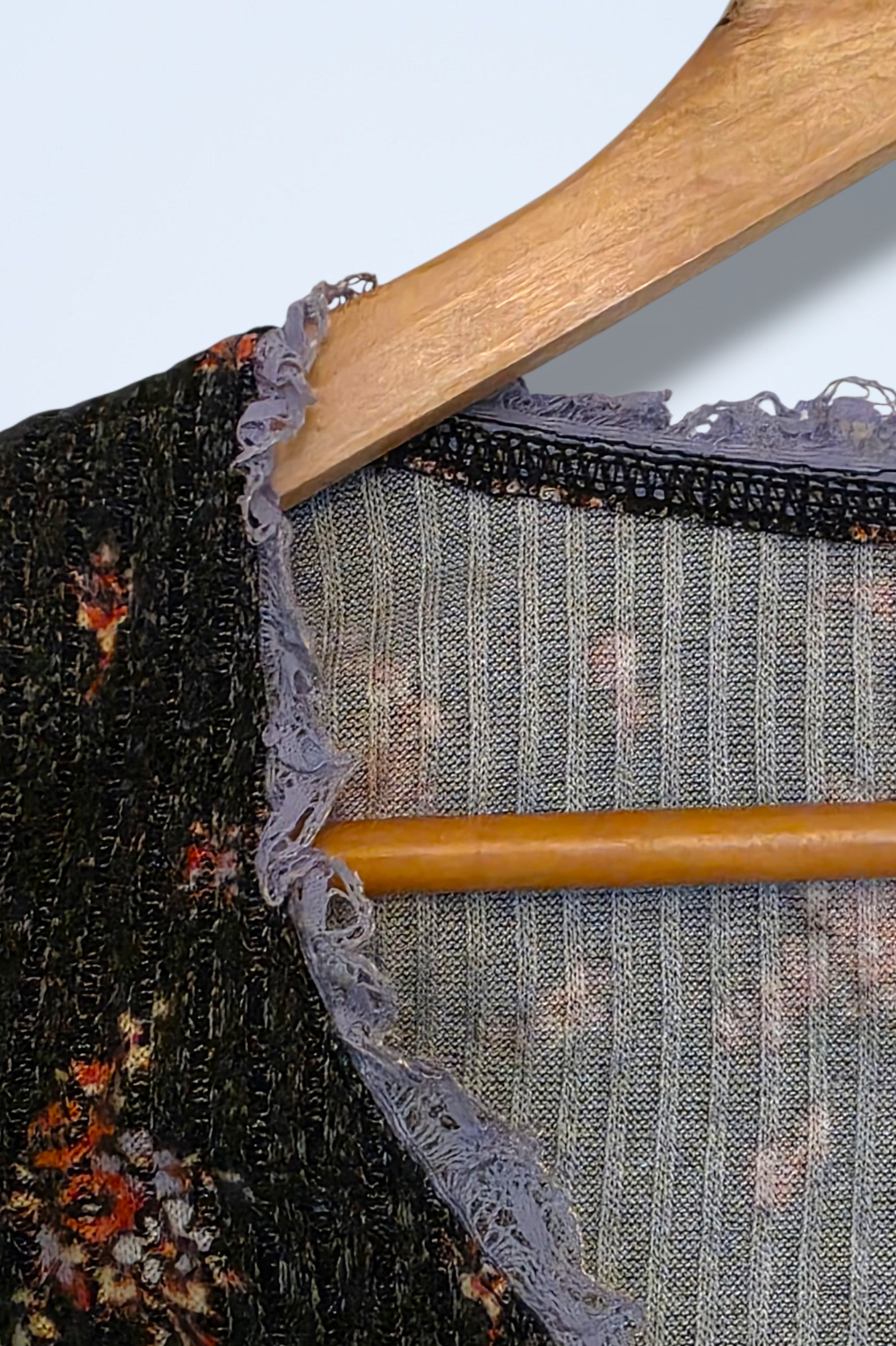 Dark grey ribbed cropped top, long-sleeved with a purple lace trim. Brand: Urban Outfitters Size: Medium Condition: New, with tags... Read more