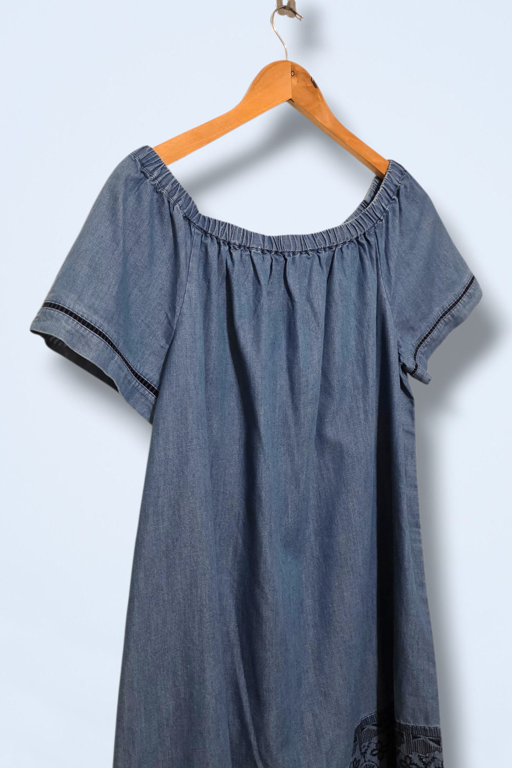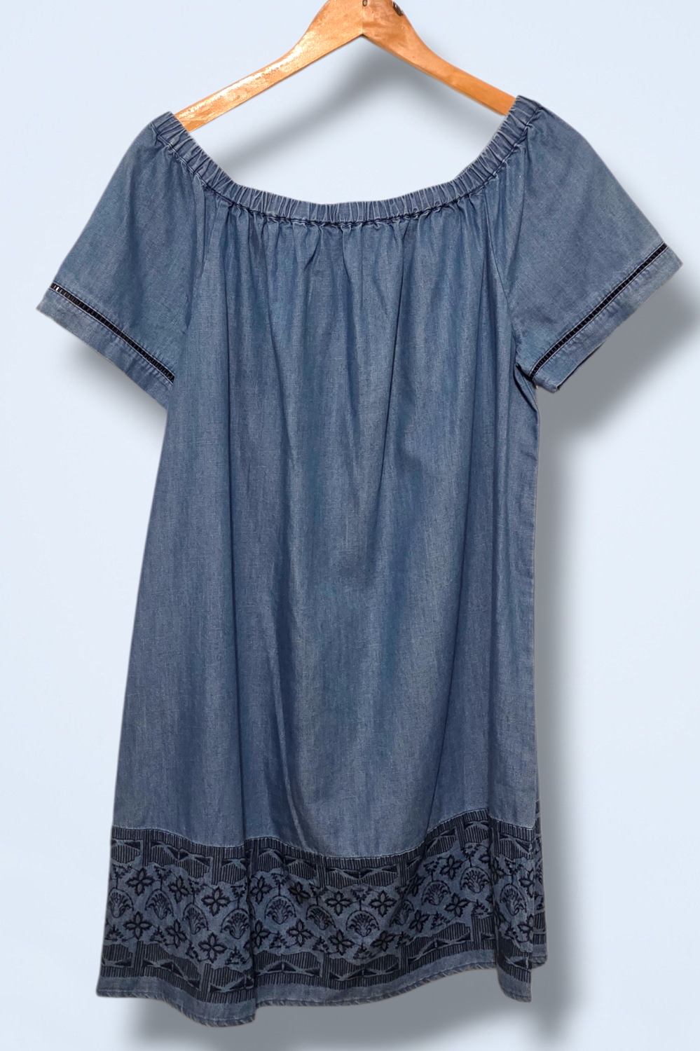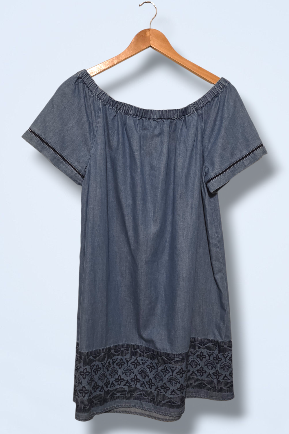 Off the shoulder, short-sleeved denim dress with an embroidered bottom Brand: White Stuff Size: UK 12 Condition: Excellent, pre-owned condition ... Read more