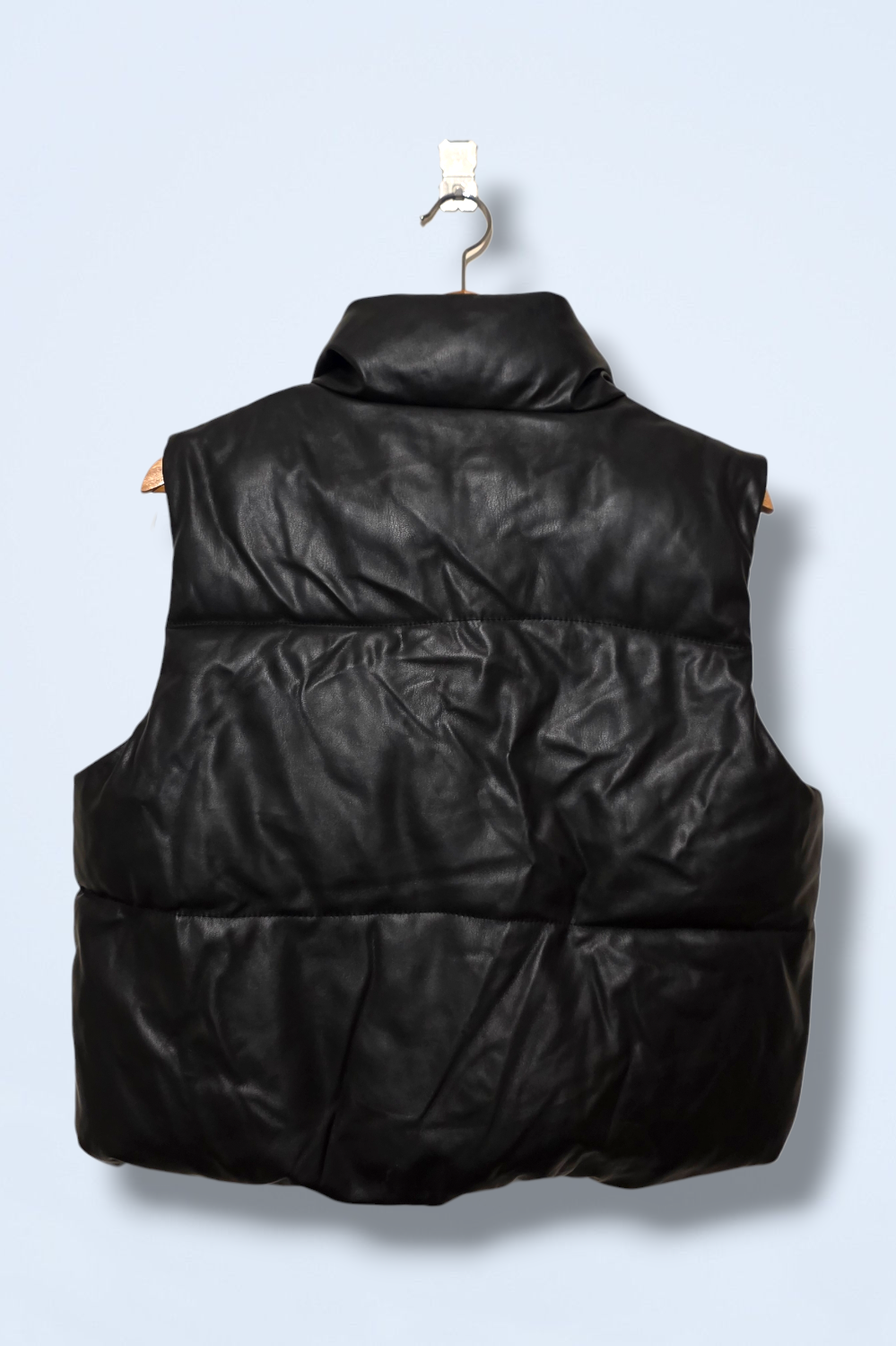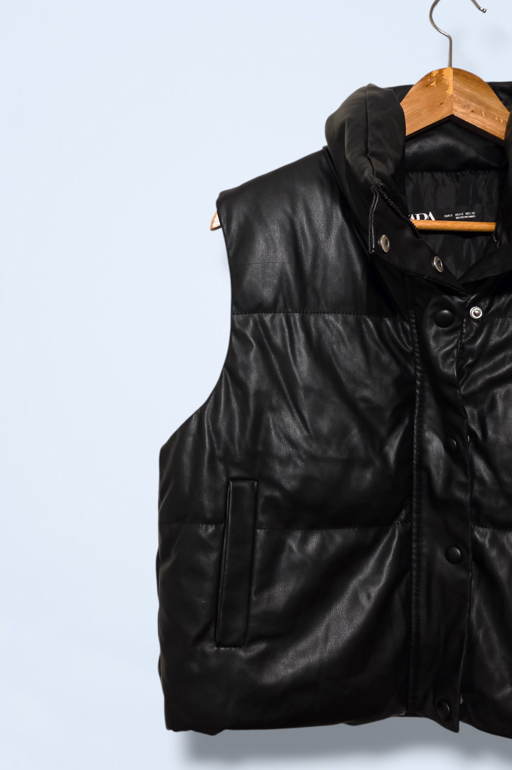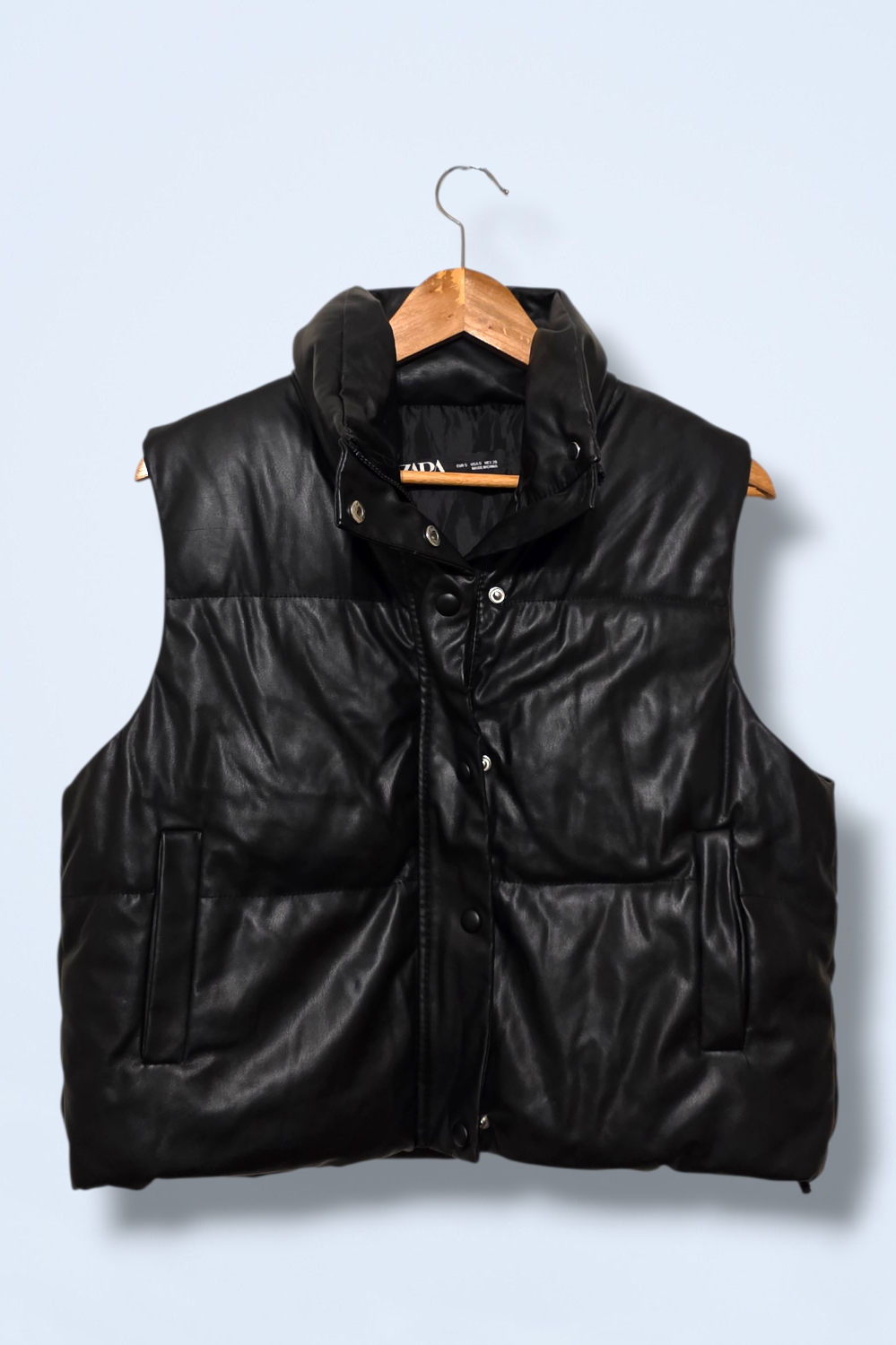 Zara black faux leather padded gilet with a quilted design and high collar. Sleeveless, warm and perfect for layering over... Read more