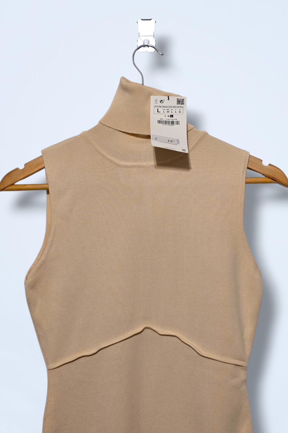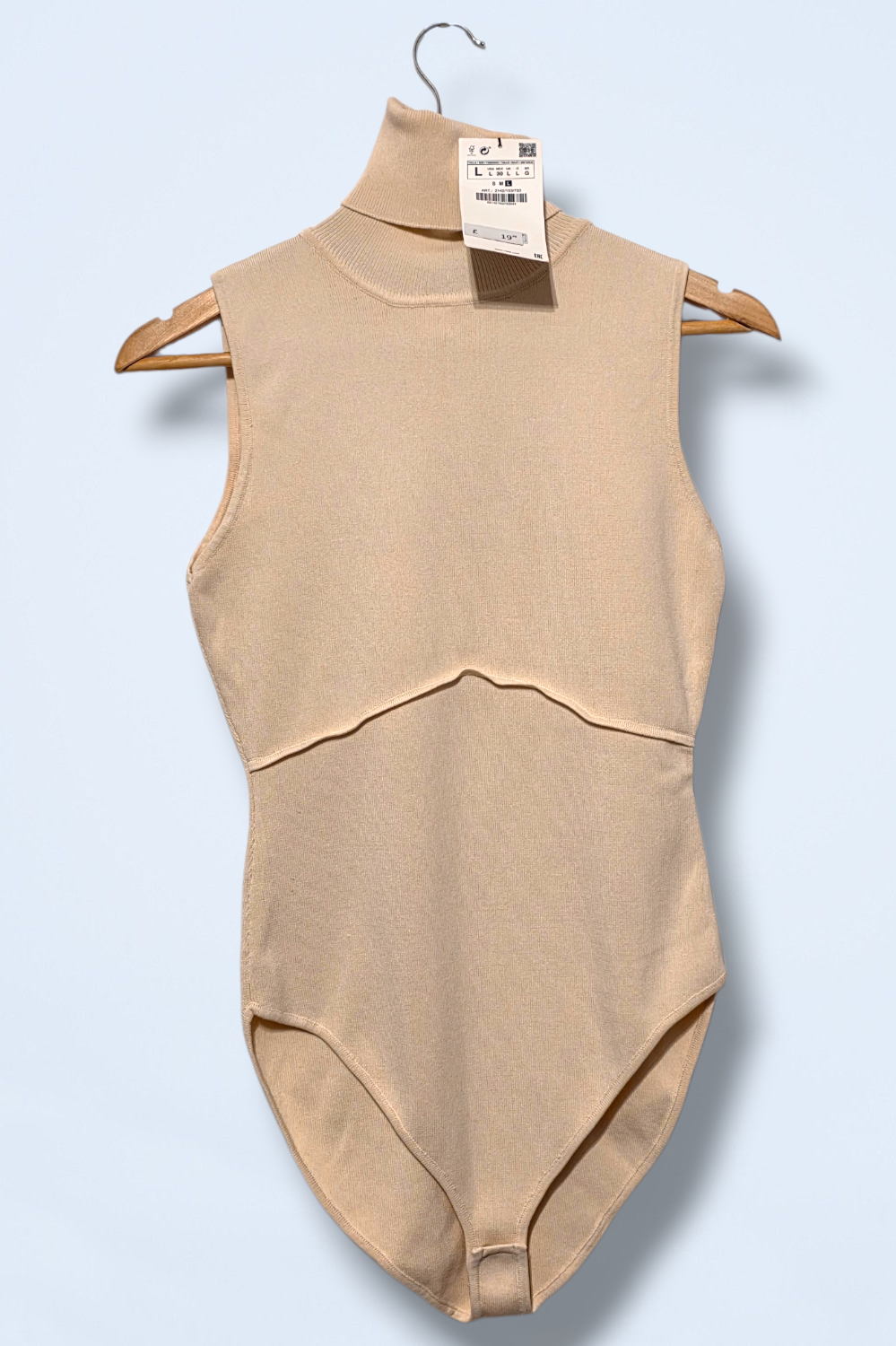 Cream ribbed, contour bodysuit. Sleeveless with a roll neck. Brand: Zara Size: Large Condition: New, with tags Material: Viscose and nylon... Read more