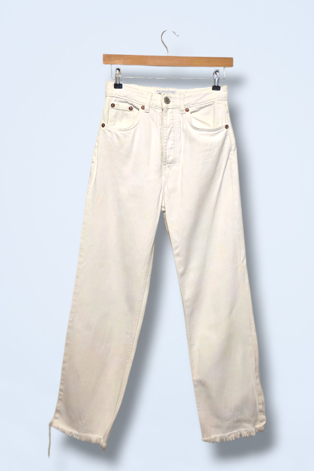 White frayed edge, straight leg denim jeans with a five pocket design. Brand: Zara Size: EU 34 W26 Condition: Great, pre-owned... Read more